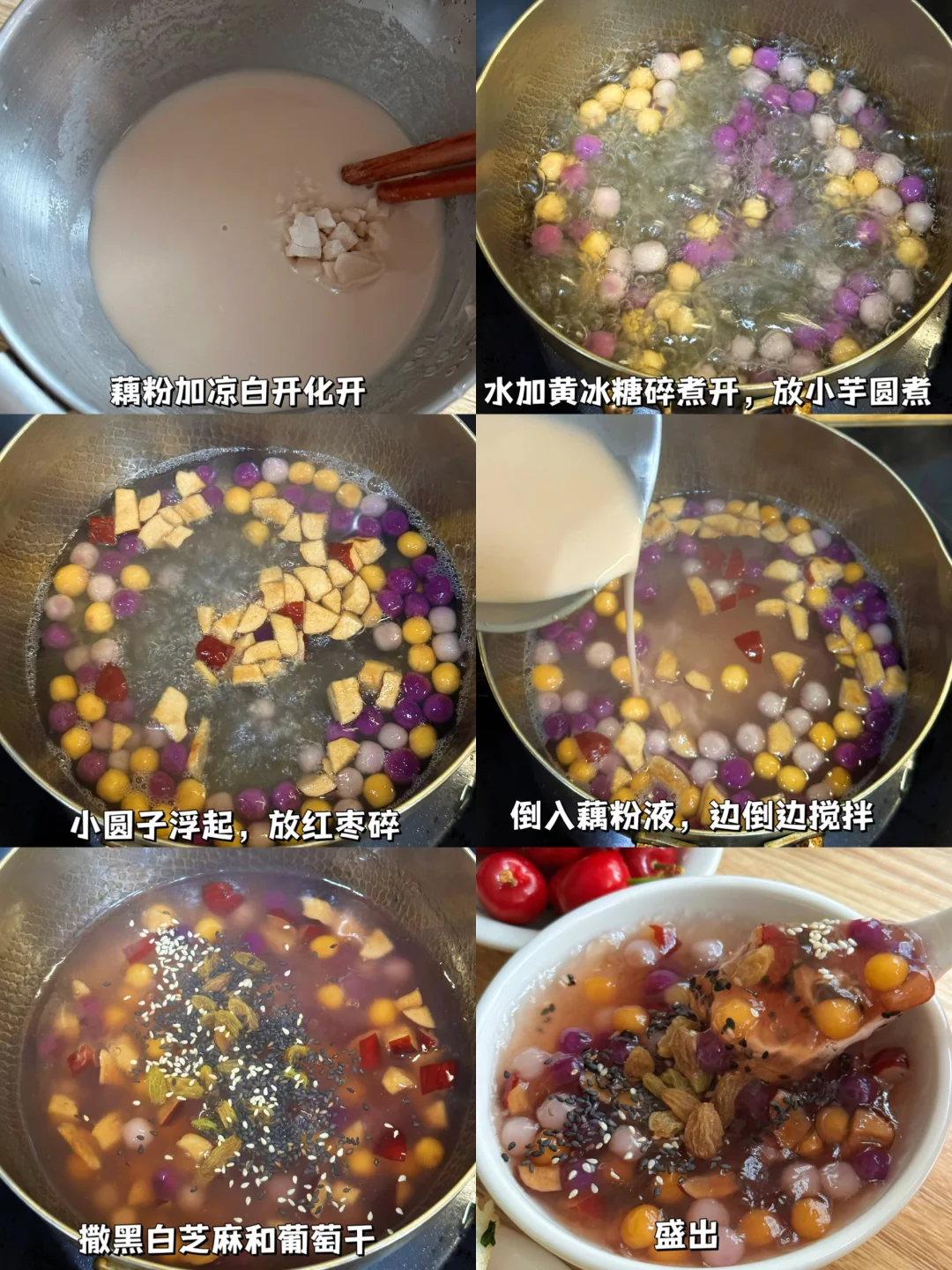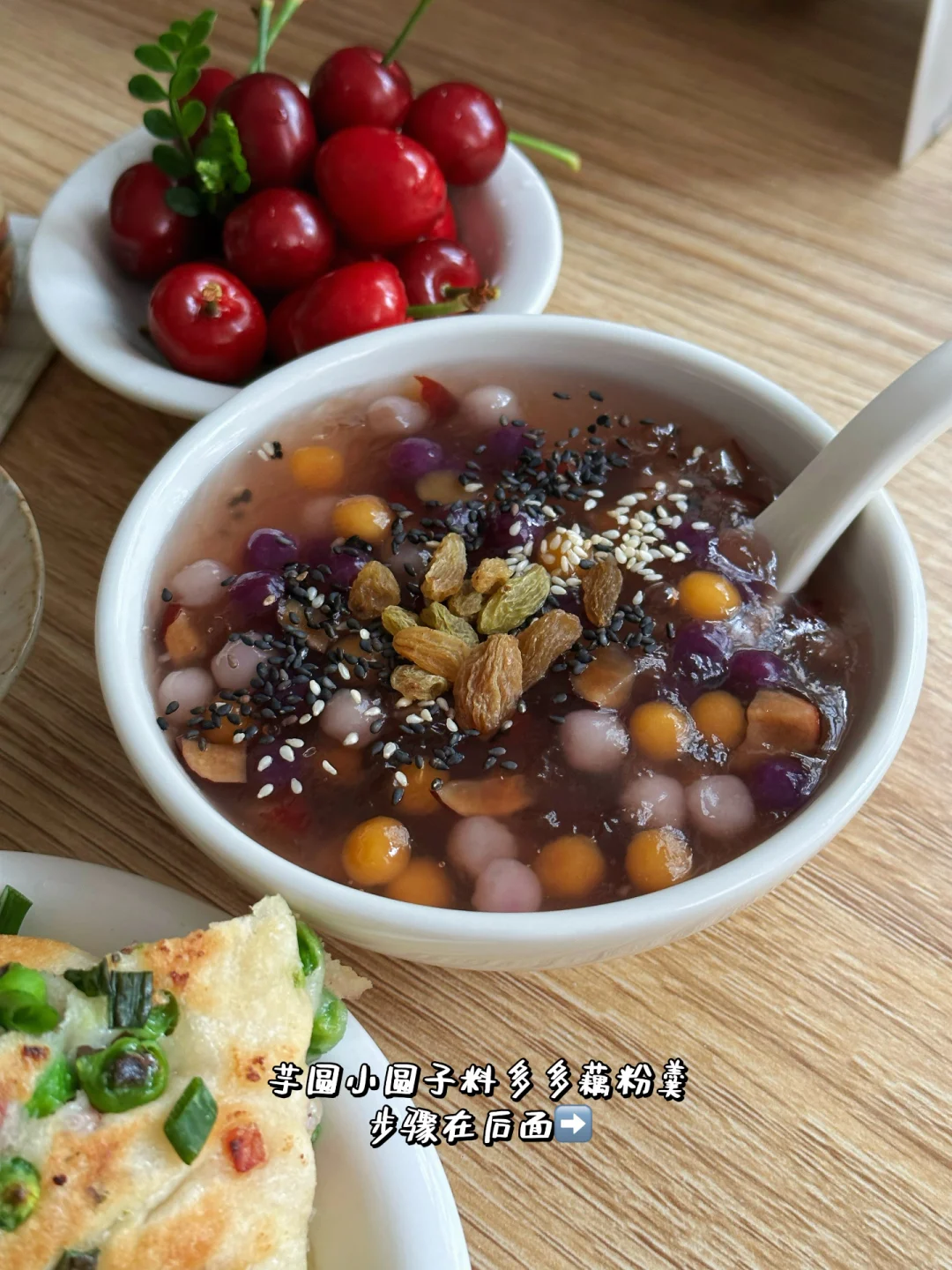 打开冰箱发现糯米圆子已经用完了,那就拿软QQ的芋圆小圆子来代替,没想到这样搭配比糯米小圆子的搭配还好吃!