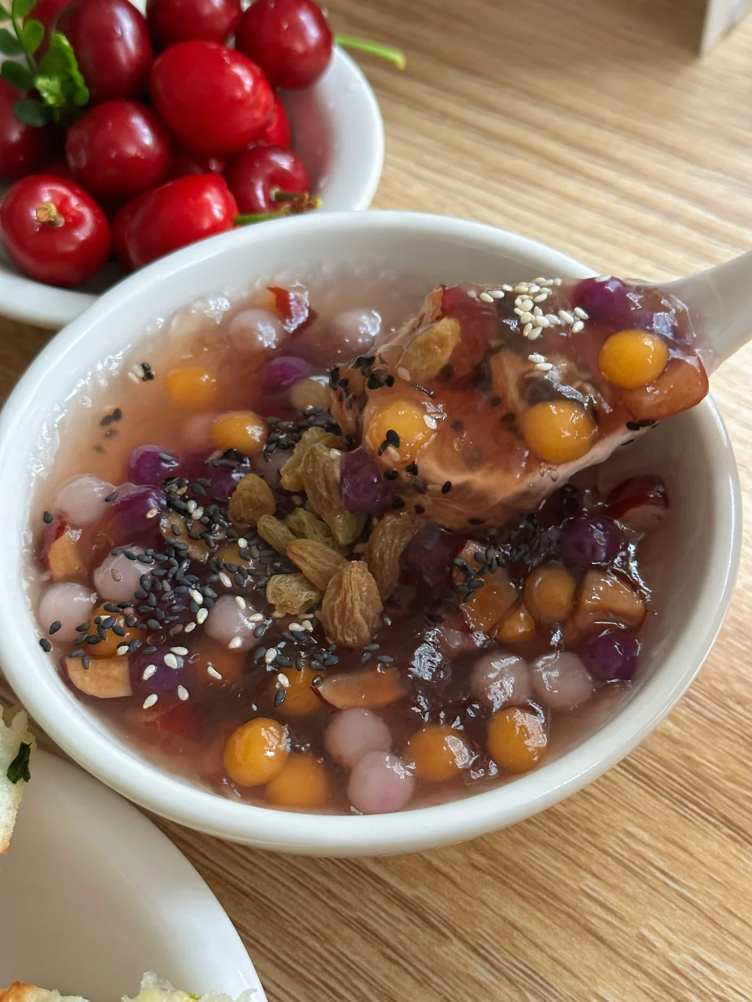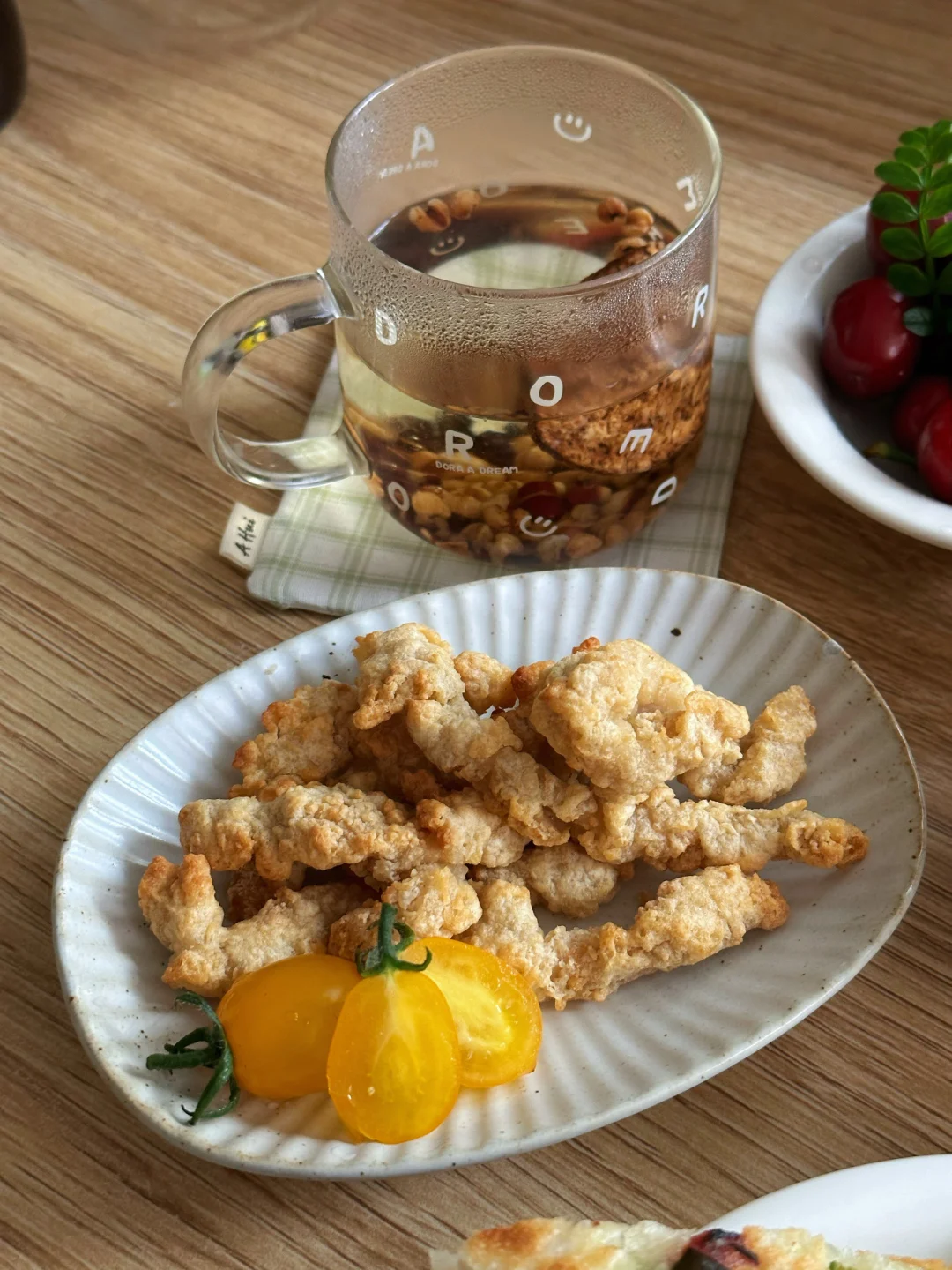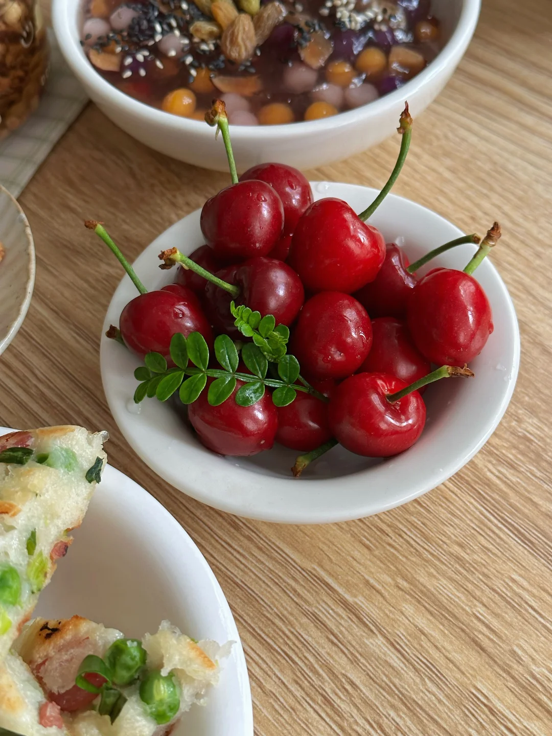 还配了小酥肉、小樱桃,一杯红豆薏仁陈皮茶!