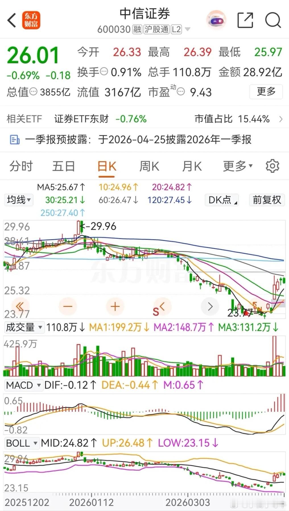红利派发,东方财富昨日盘后发布公告称,将向全体持股股东每10股派发现金红利1.00元(含税),股权登记日期为2026年4月20日,想要参与派发现金红利的可以继续持股,不想要现金红利的可以在股权登记日当天选择卖出,第二天再接回来即可!券商一哥中信证券在2025年年报中提到,本年度现金红利派发将是每19股10派发4.1元(含税)。