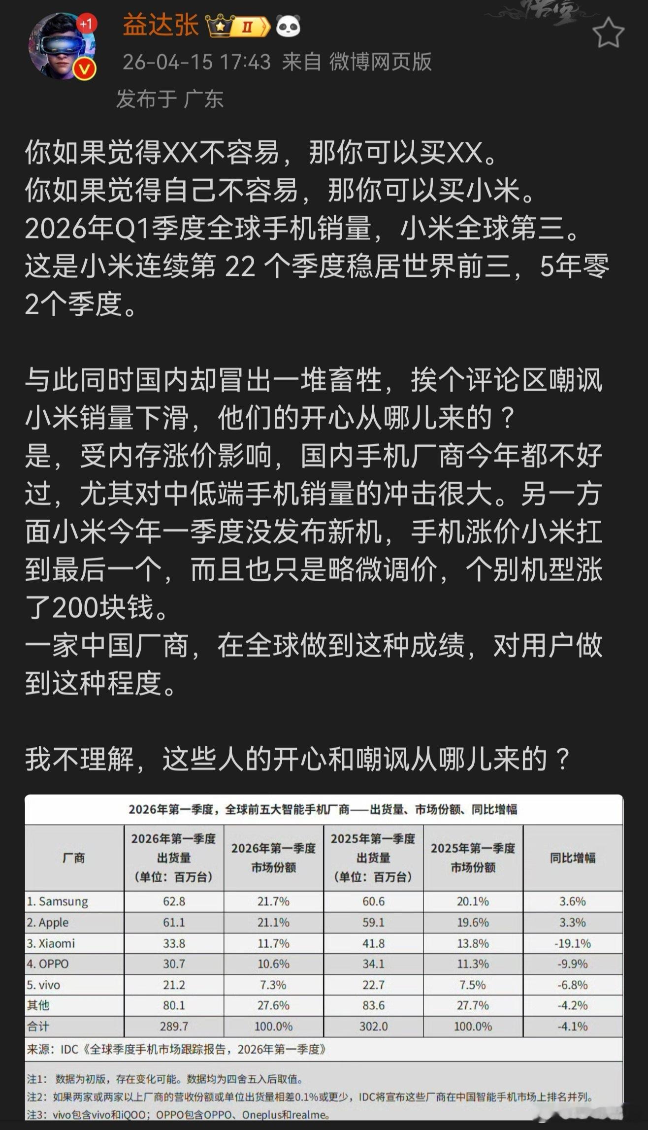 2026年第一季度国内市场出货量TOP51.华为2.苹果3.oppo4.vivo5.荣耀前五占据了国内82.7%的市场份额,至于剩下的嘛,反正赢麻了
