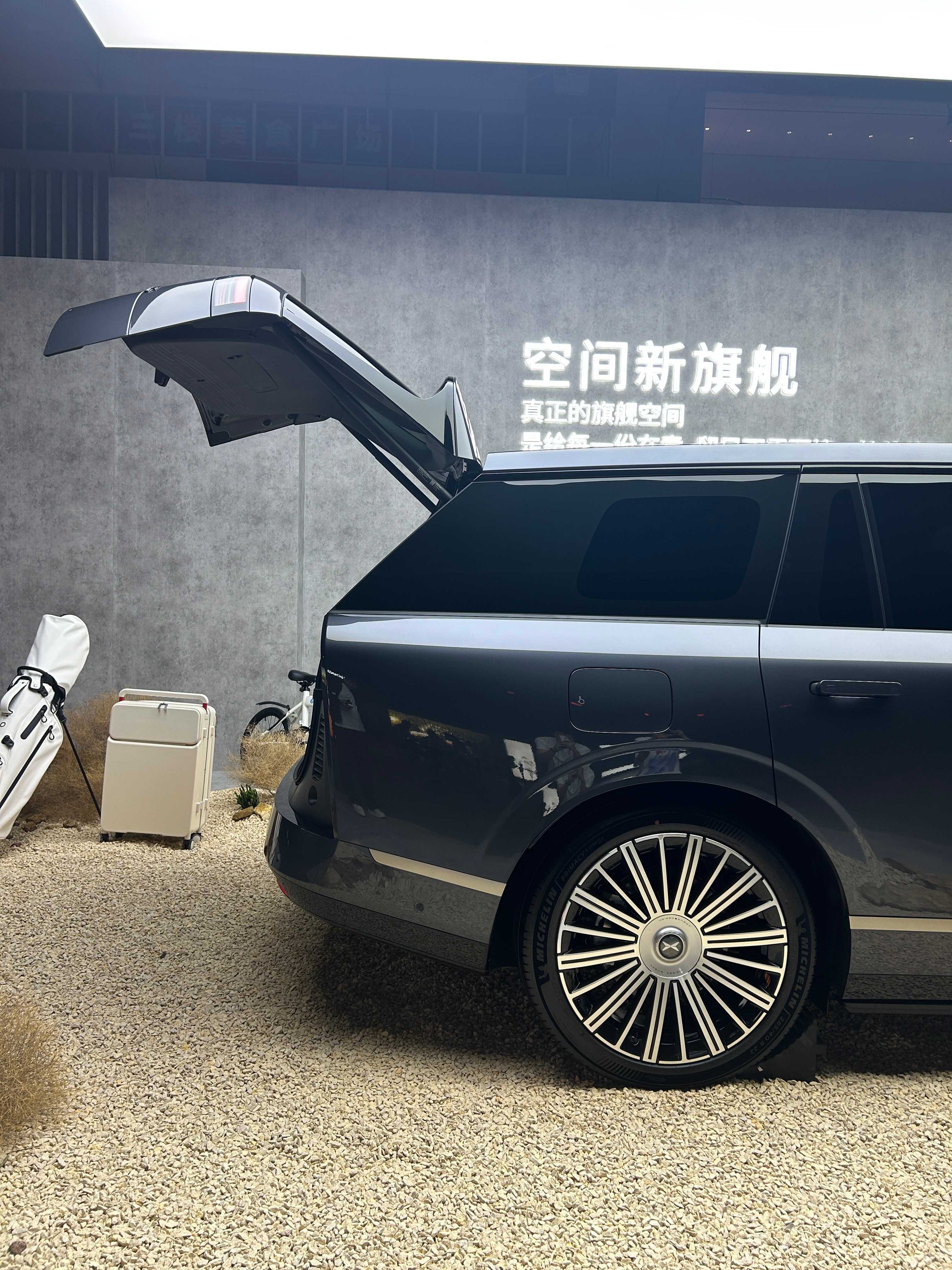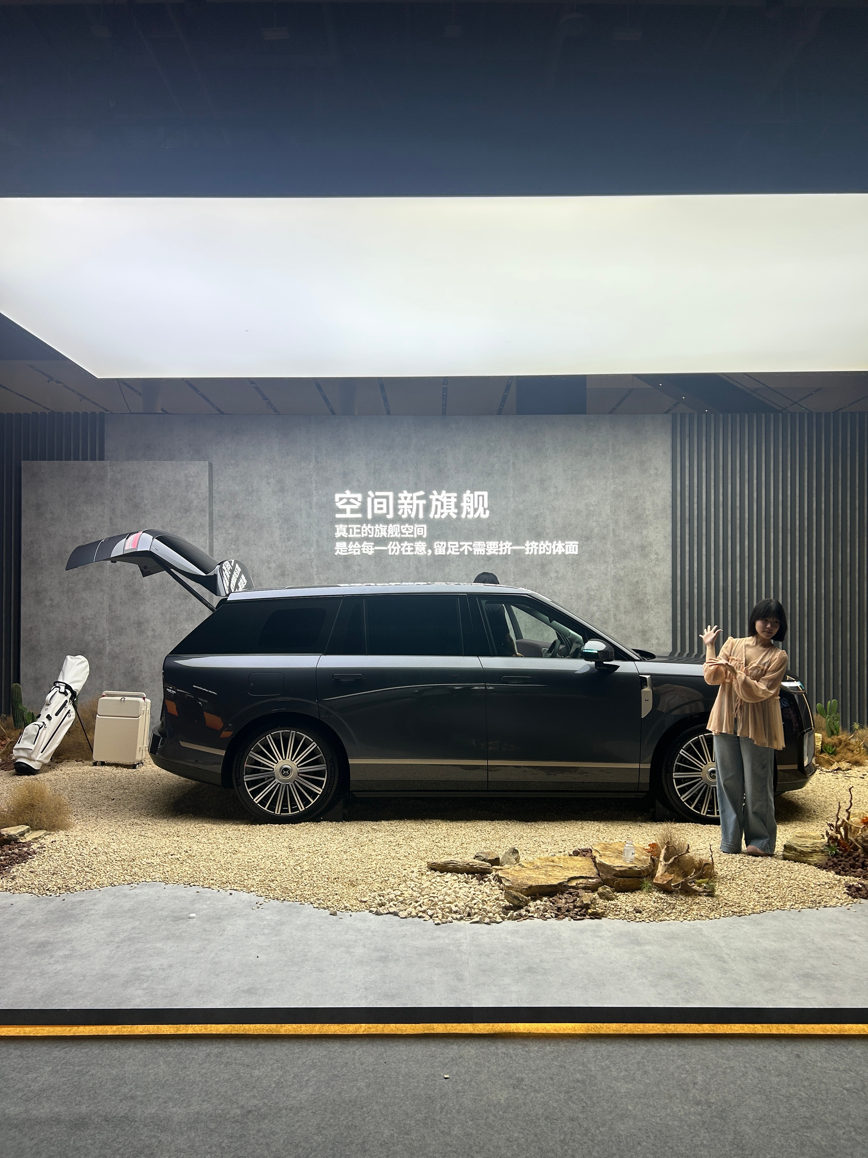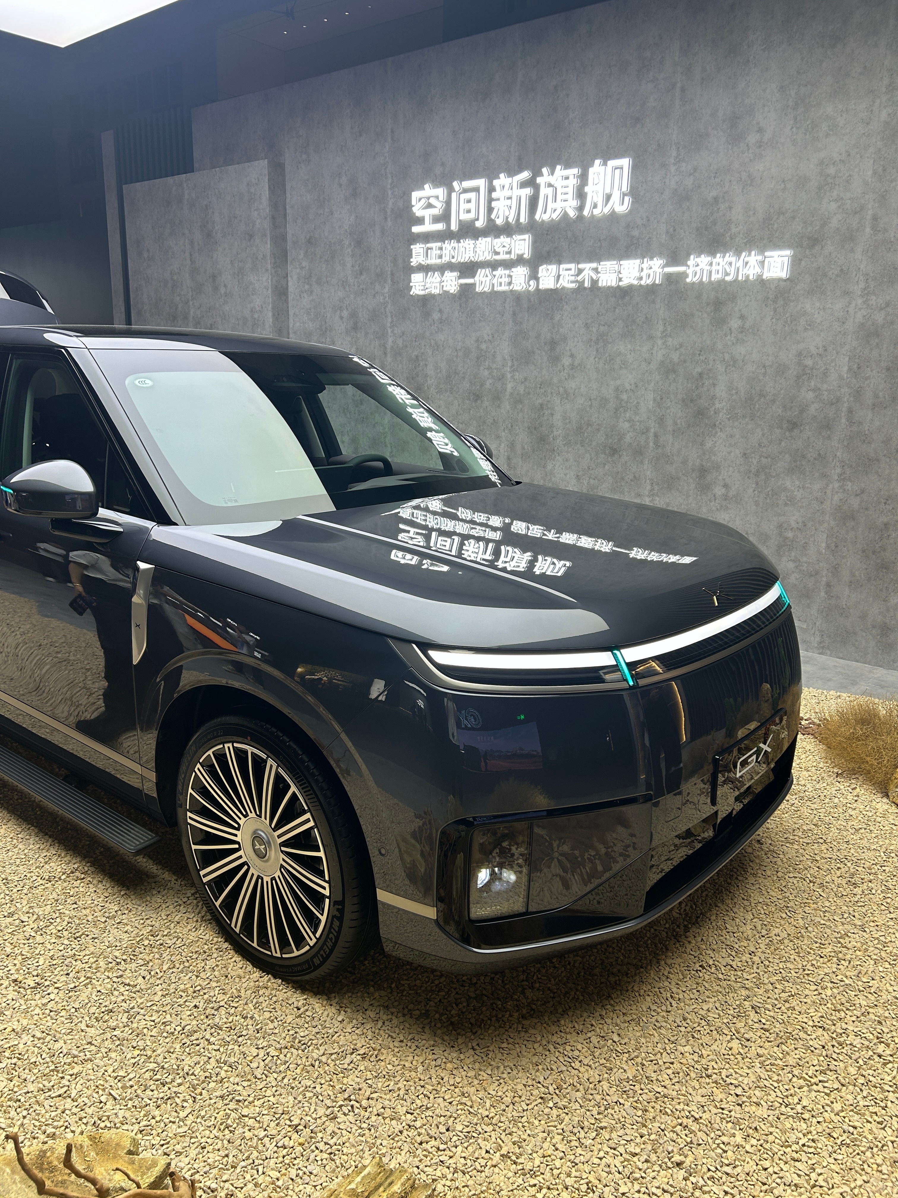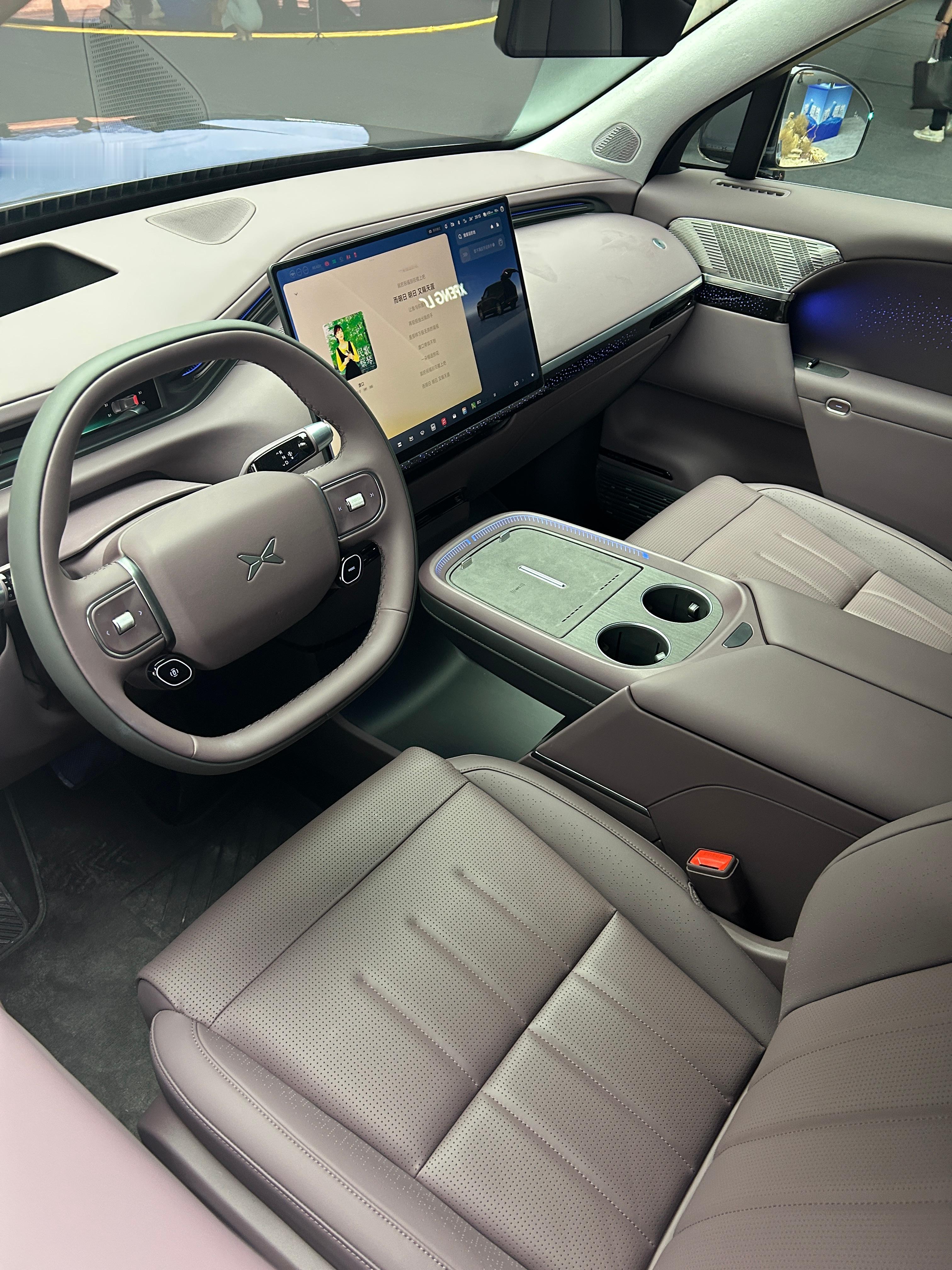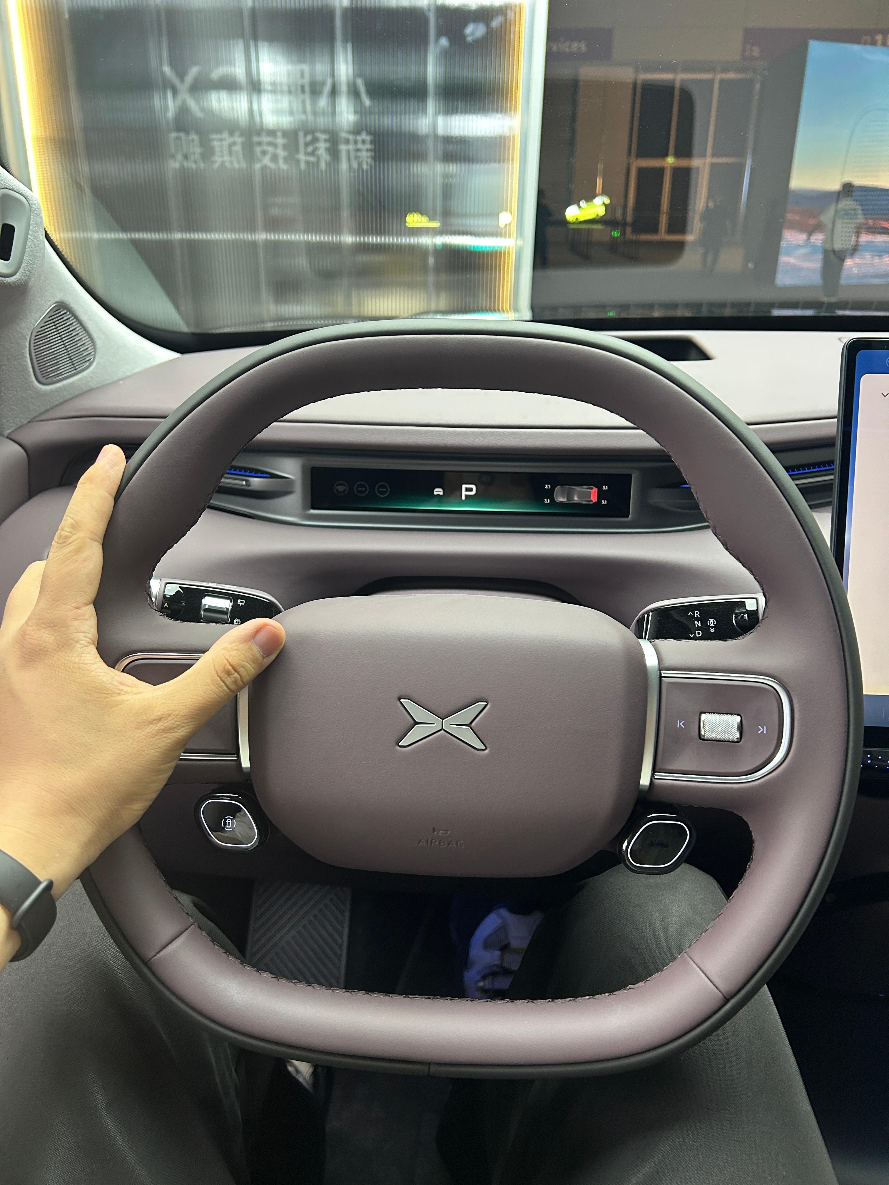 还记得前段时间看图的时候说感觉车头有点太下压,但实际刚现场仔细看了看,各个角度的看,这是我第一次见到小鹏GX的实车,最大的感受就是自己想多余了,实车还是很好看的,很特别,我刚还在想用个什么样的形容来表达外观,可能很科幻比较贴合,它是那种跟P7一样,“一面儿式的设计”,我真的很难用一个准确的词来表达,反正就你可能见了实车才能感觉到,特别是日照金山那个颜色尤其明显,推荐大家去看实车!!然后整个游艇式流线让这个造型就很有气势。