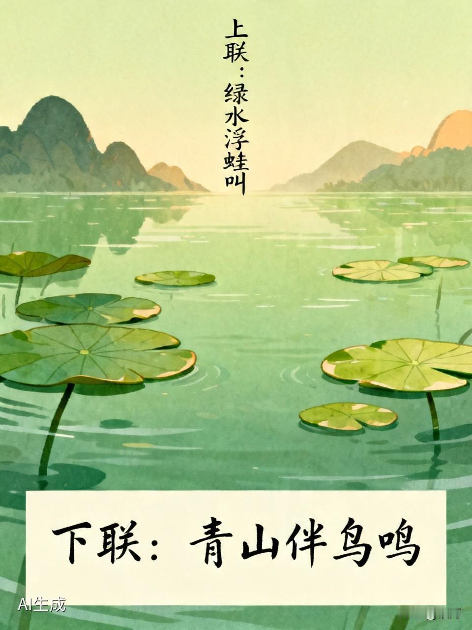 看到“绿水浮蛙叫”这个上联,瞬间来了兴致。上联描绘了一幅绿水之上青蛙欢叫的画面,充满生机。我对“红花引蝶忙”。“红花”对应“绿水”,都是自然景色且色彩相对;“引蝶”对应“浮蛙”,一个是花引蝶,一个是水浮蛙,画面感十足;“忙”对应“叫”,“叫”是青蛙的动作,“忙”体现出蝴蝶在花丛中忙碌飞舞的状态。就像对联里“珠卷半帘邀月入,爱盈双眼等人来”一样,上下联相互呼应,组成一幅美妙的画卷。