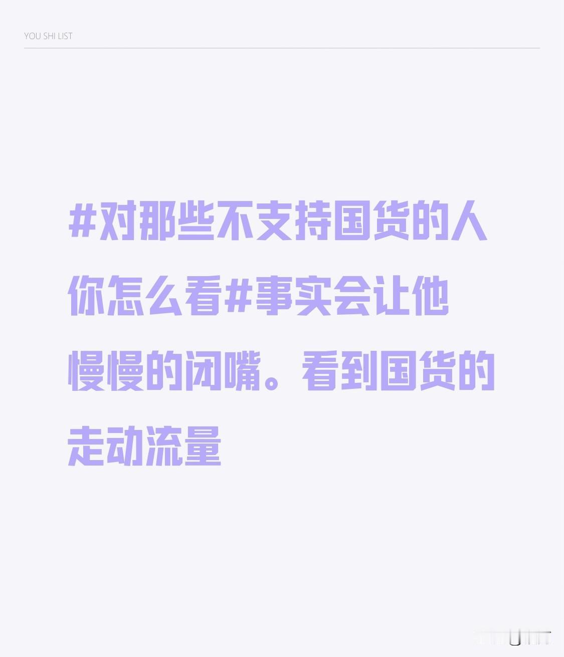 对那些不支持国货的人,我只想说事实会狠狠打他们的脸。就拿手机行业来说,以前很多人觉得国产手机不行,非苹果不用。但现在呢,华为、小米等国货手机崛起,华为的拍照技术、小米的性价比,都让世界看到了中国品牌的实力。再看汽车领域,比亚迪的新能源车销量一路飙升,技术也不断创新。国货的流量和口碑都在不断提升,那些曾经看不起国货的人,估计也慢慢闭上了嘴。事实胜于雄辩,国货正用实力证明自己,未来必将越来越好!