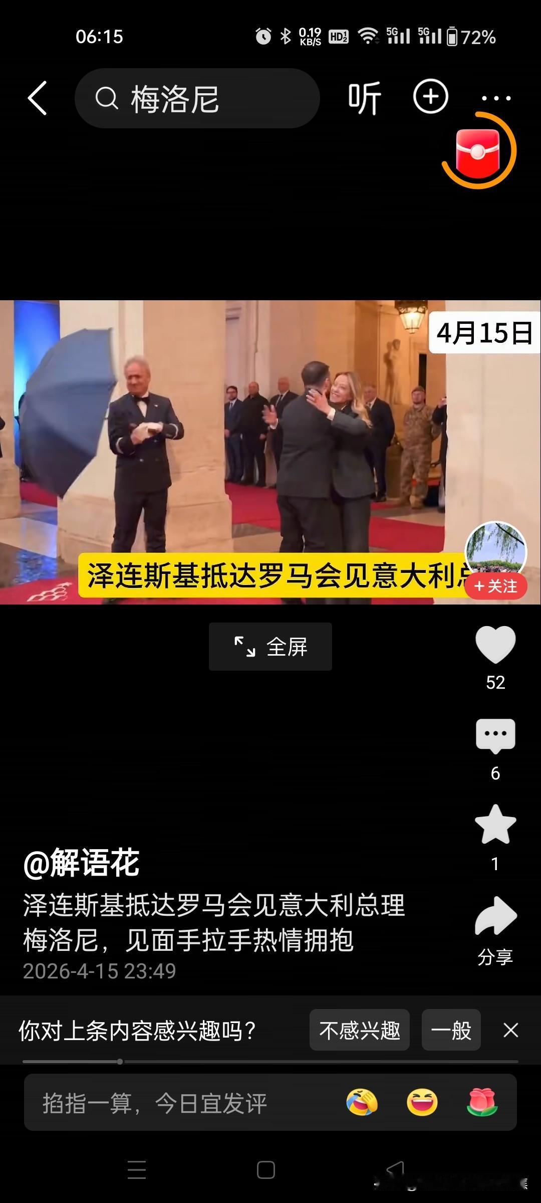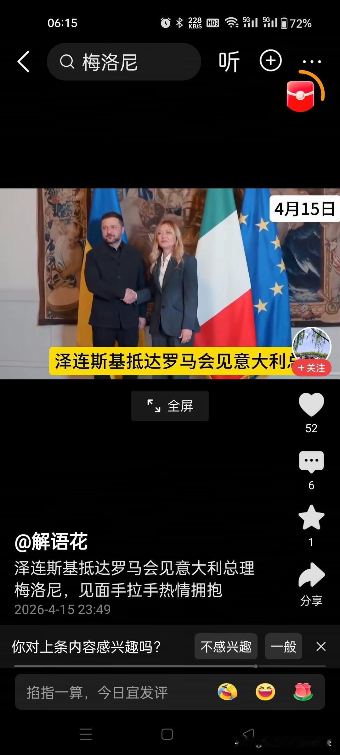 2026年4月16日,泽连斯基在罗马与意大利总理梅洛尼会面,双方就军事支持、防务合作及欧洲900亿欧元援助包的推进达成共识。