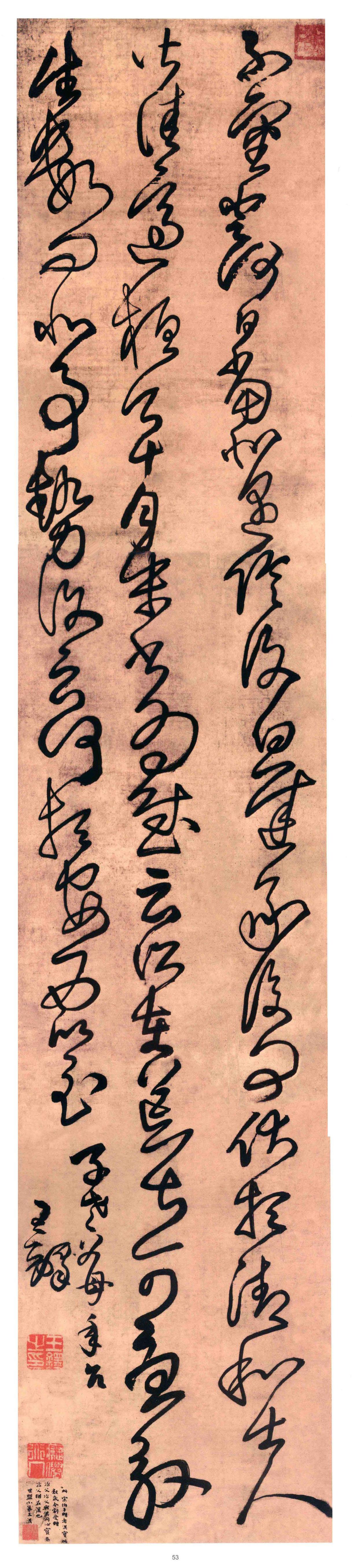 草书这门艺术在王铎手上完成了一次重要的蜕变。他既没有丢掉传统的根基,又走出了一条自己的路。说他的行草是草书发展史上的一个新高峰,是基于上述事实的客观判断。
