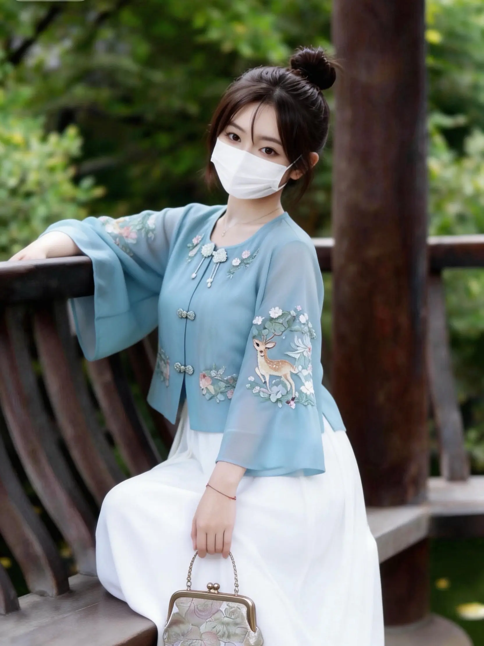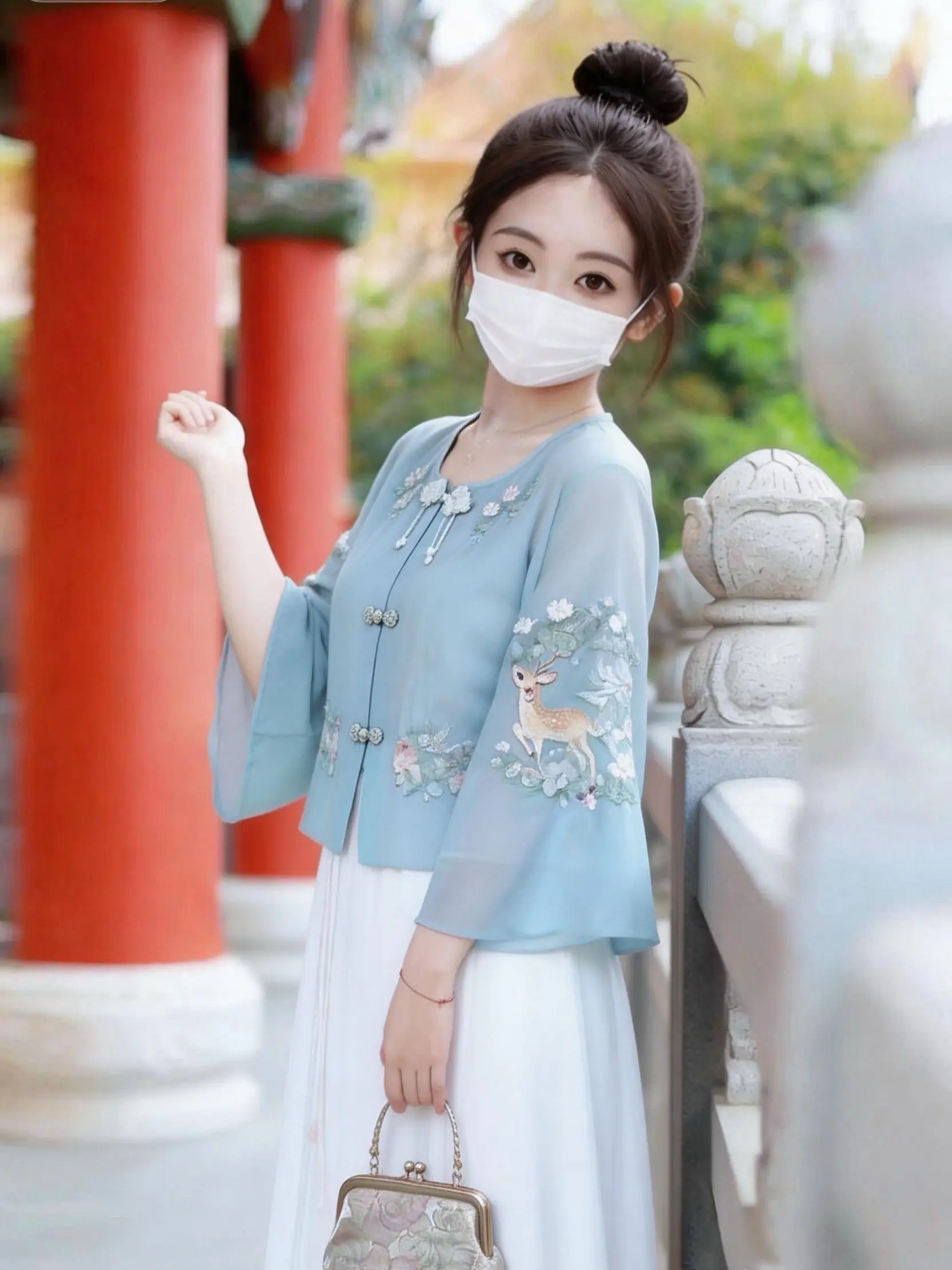 误入江南的国风少女|这才是东方美学的温柔。一眼沦陷的新中式穿搭💙水蓝色雪纺上衣绣着灵动小鹿与繁花,银线盘扣+珍珠流苏,细节里都是东方韵味,搭配垂感白裙,温柔又显气质,日常出街/出游拍照都超上镜,小个子也能穿出温婉大家闺秀感~国风真的永远让人着迷!