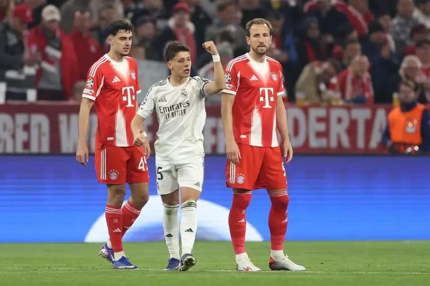 【欧冠淘汰赛,拜仁双杀皇马,凯恩比姆巴佩命硬】拜仁确实双杀皇马,2025-26 欧冠 1/4决赛,首回合(伯纳乌)拜仁 2-1 皇马,次回合(安联),拜仁 4-3 皇马,总比分:6-4 → 拜仁双杀晋级四强。