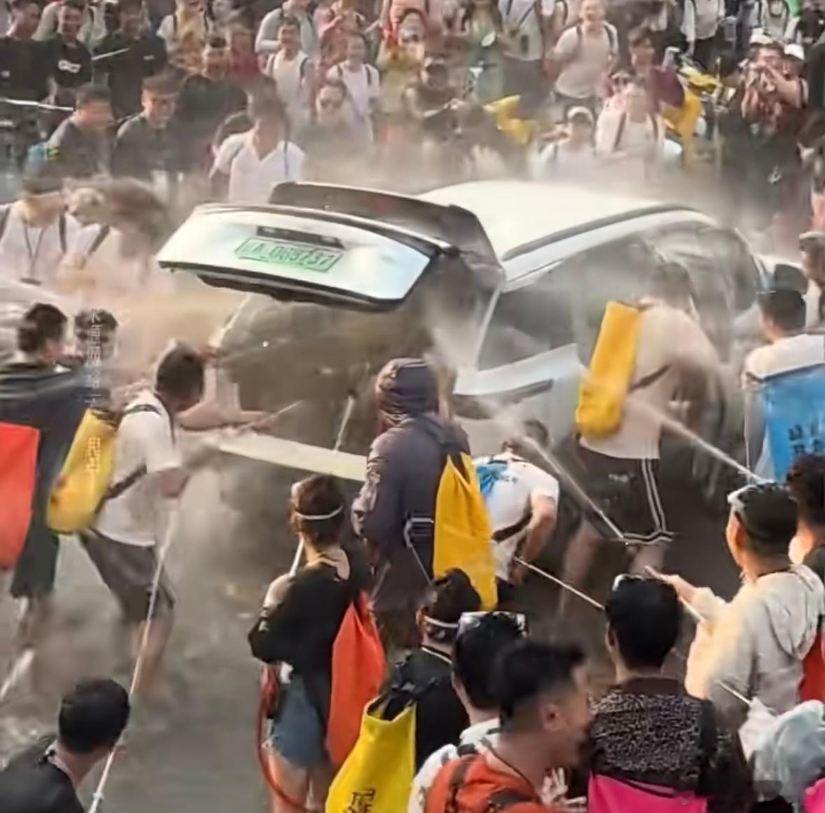 西双版纳的泼水节确实很好玩,但这个拉开车门给人车里滋是不是不太礼貌啊?