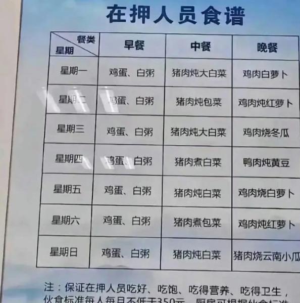 许家印如今的一日三餐,就是这份普通的在押人员食谱。