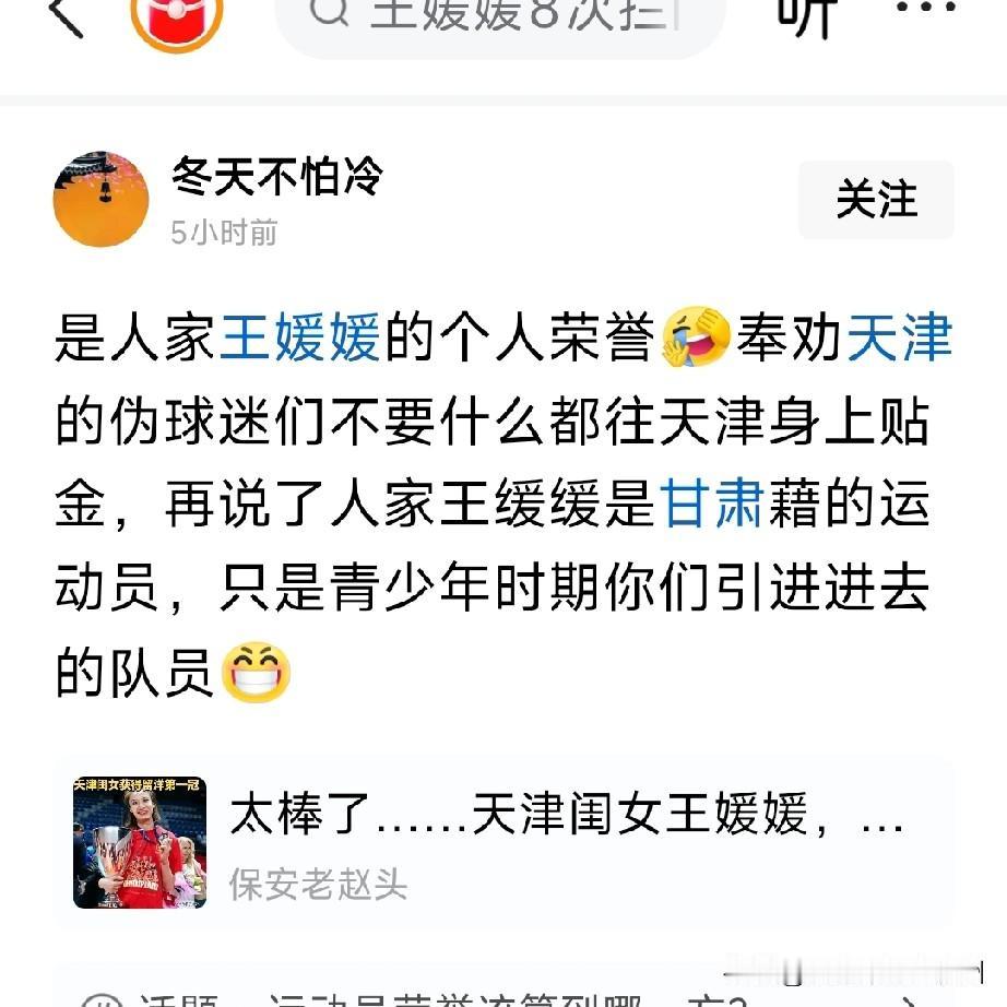 王媛媛从小就在天津打球,是天津女排培养了她如此优秀,没有天津女排的培养,根本不会有她的今天。