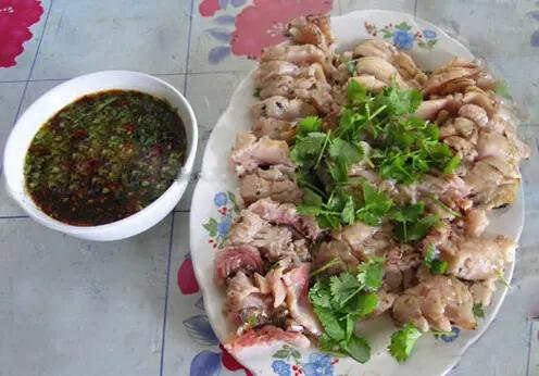 然后放醋,放辣椒和蒜沫等调料,就可以吃了。