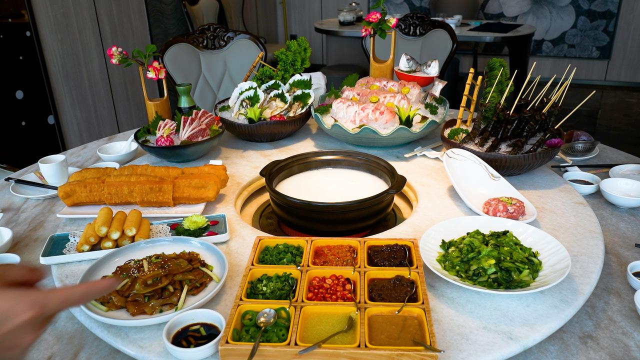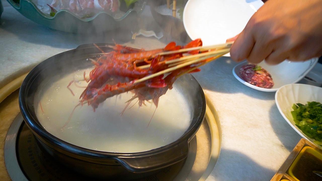 广东人对“鲜”的执念,在这锅毋米粥火锅里展现得淋漓尽致。探访的这家老店,二十多年只靠一锅米粥便屹立不倒。那如牛奶般丝滑的米汤,实则用老母鸡汤慢熬而成,不见一粒米,却凝聚了醇厚与清雅。用它做锅底,既是烹饪,也是唤醒——生蚝肥美、九节虾弹牙、A6和牛脂香四溢,每一味食材都在温柔的粥水中释放出极致鲜甜。更妙的是,所有精华沉入锅底后,师傅会再加入米熬煮成绵密粥底,每一口都饱含海鲜与肉香的余韵。而那根38元、如手臂般粗壮的黄金大油条,酥脆香口,蘸着粥吃,或者配一口海鲜粥,脆糯交织,堪称点睛之笔。一锅粥,从淡到浓,由简入丰,广东人的鲜味哲学,尽在其中。
