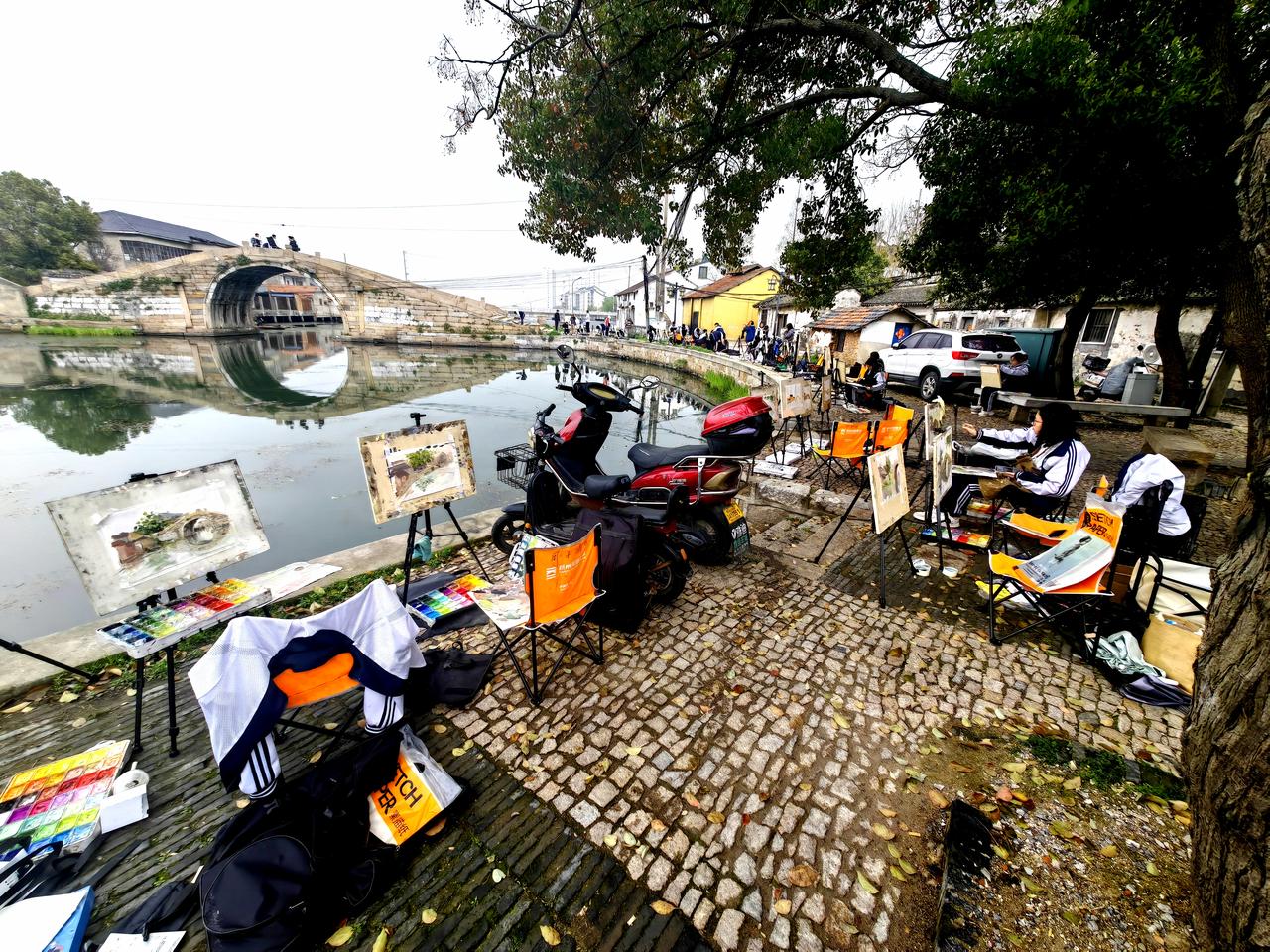 17、8岁的高中美术生与500多岁的古石桥对话。 图中间的古桥是甪直古镇目前最大
