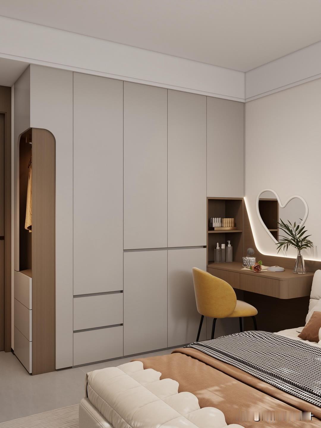 - 大卧室/衣帽间:U型、整墙柜+开放展示区