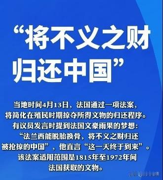 4月13日,法国通过了一项文物归还法案,简单说,就是把殖民时期掠夺自外国的文物,