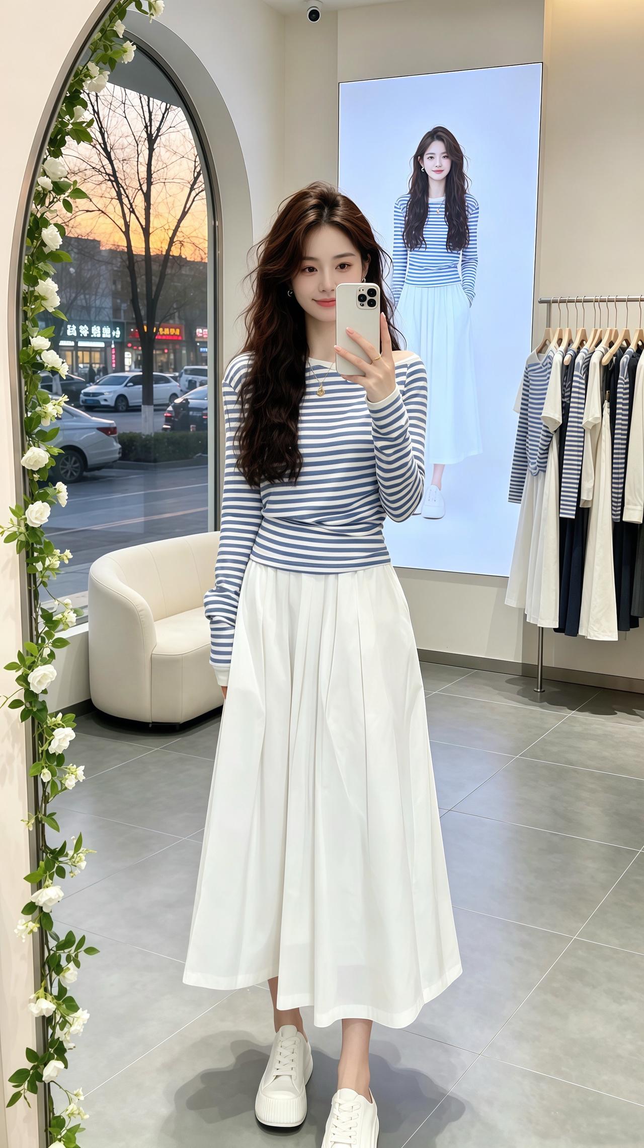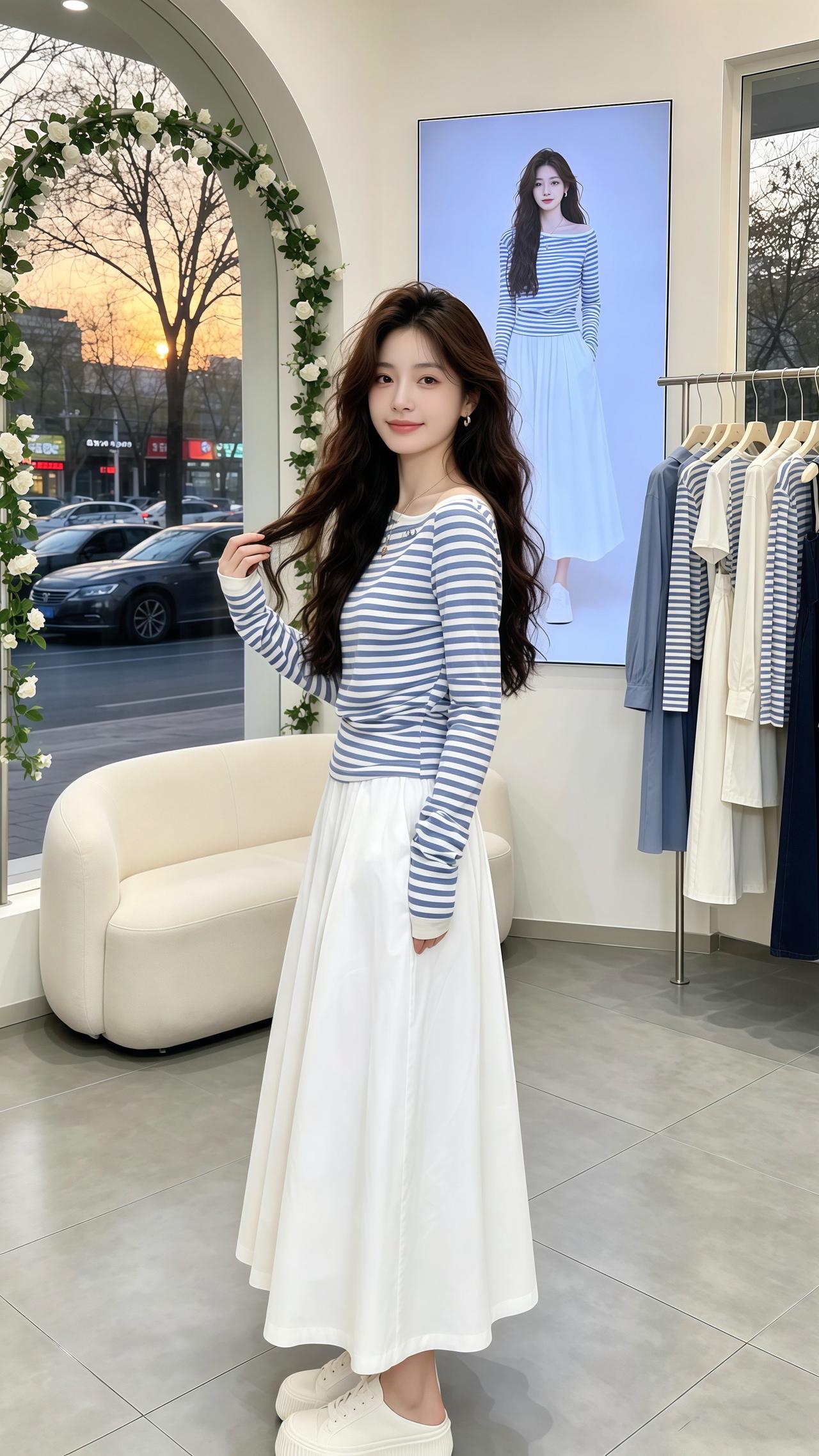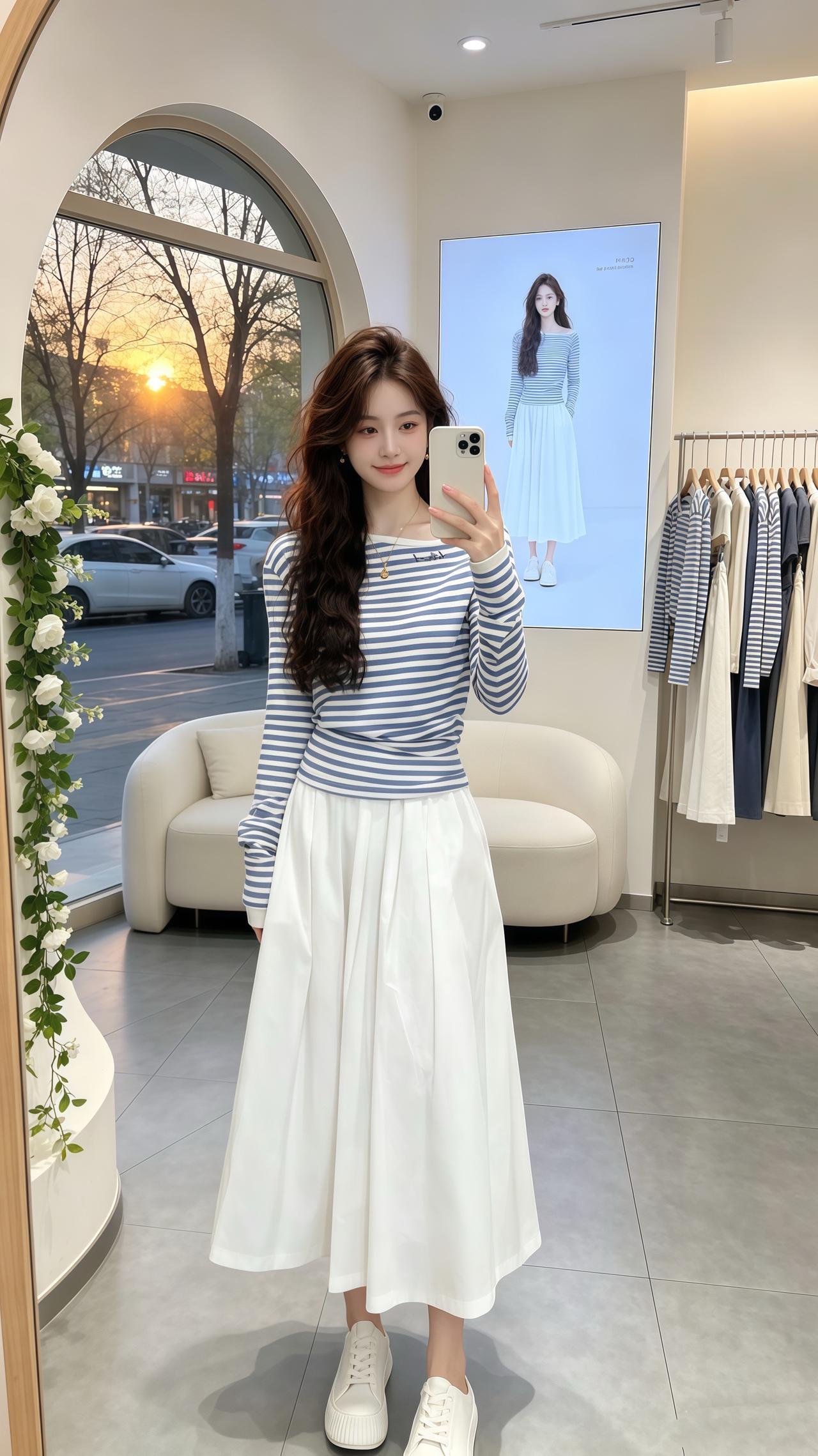 高腰洋气套装 条纹长袖套装 洋气上档次