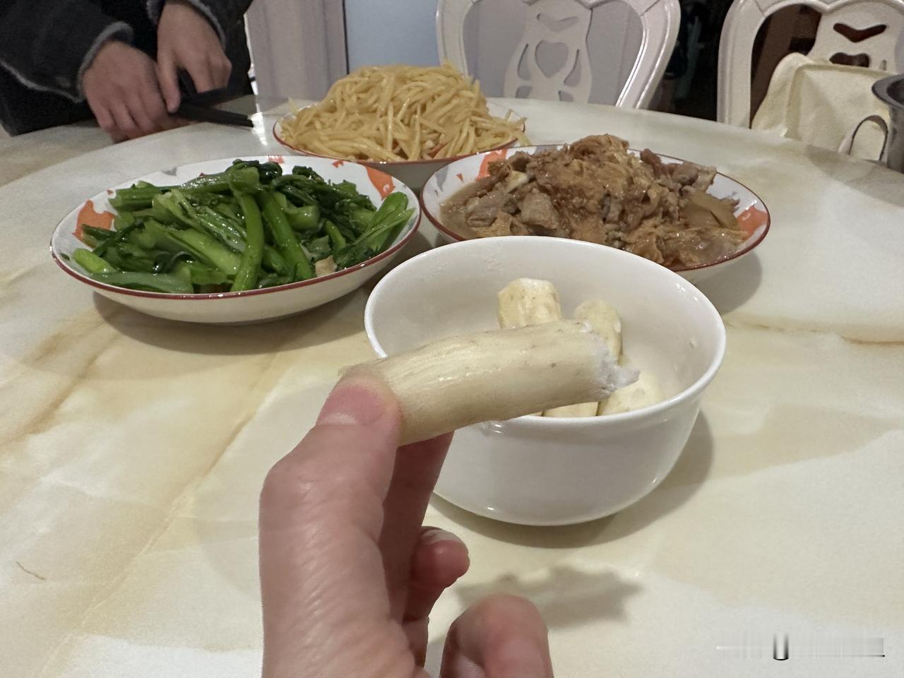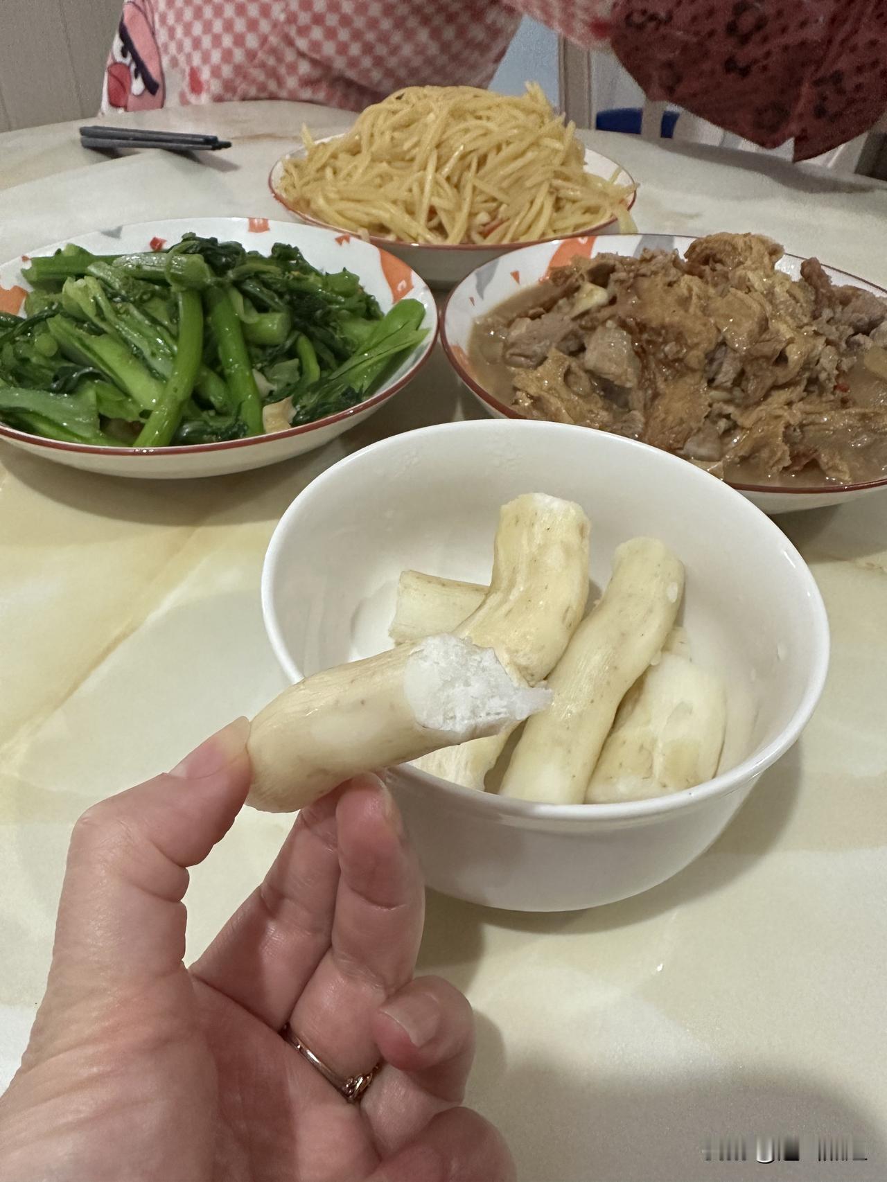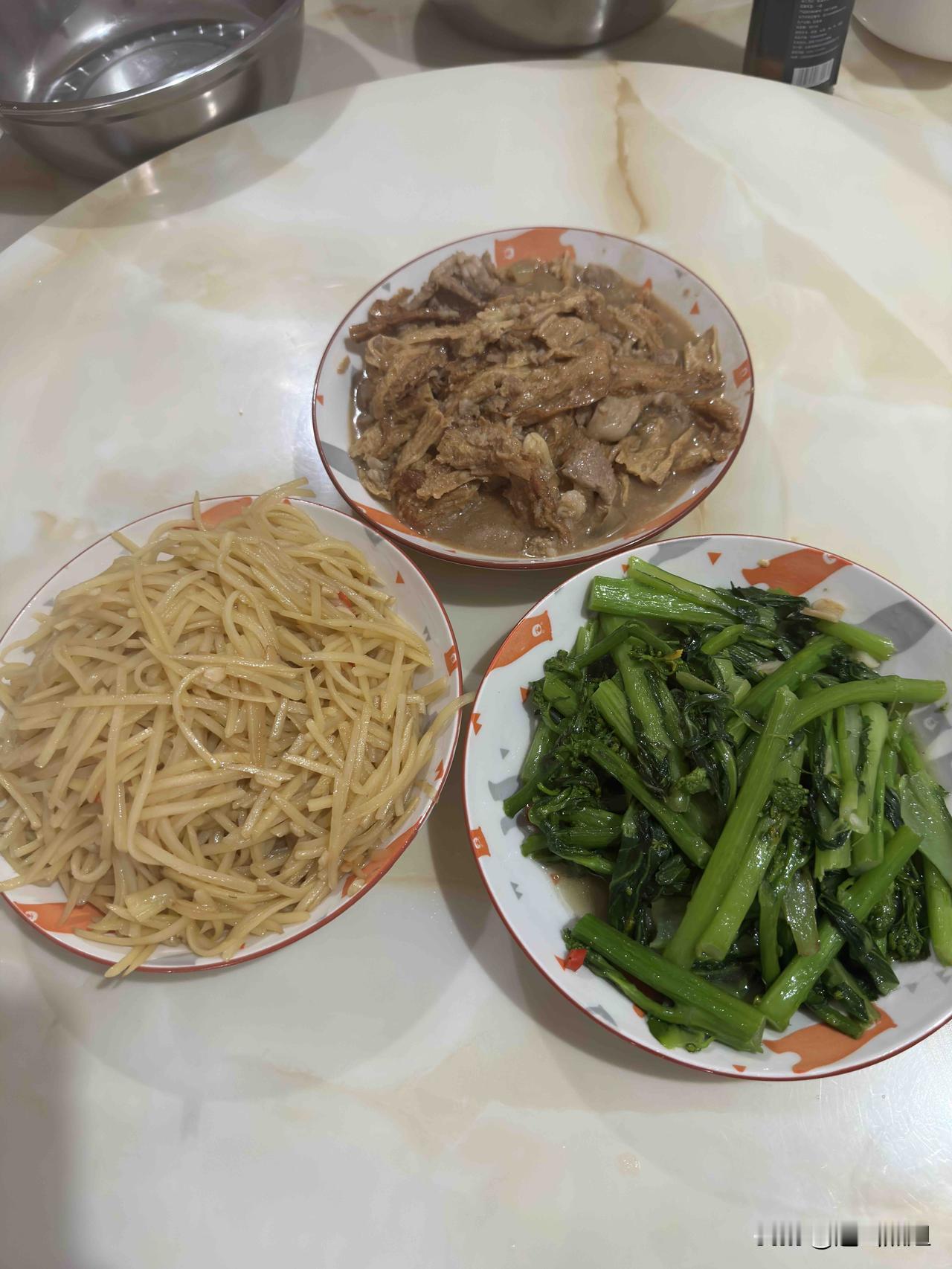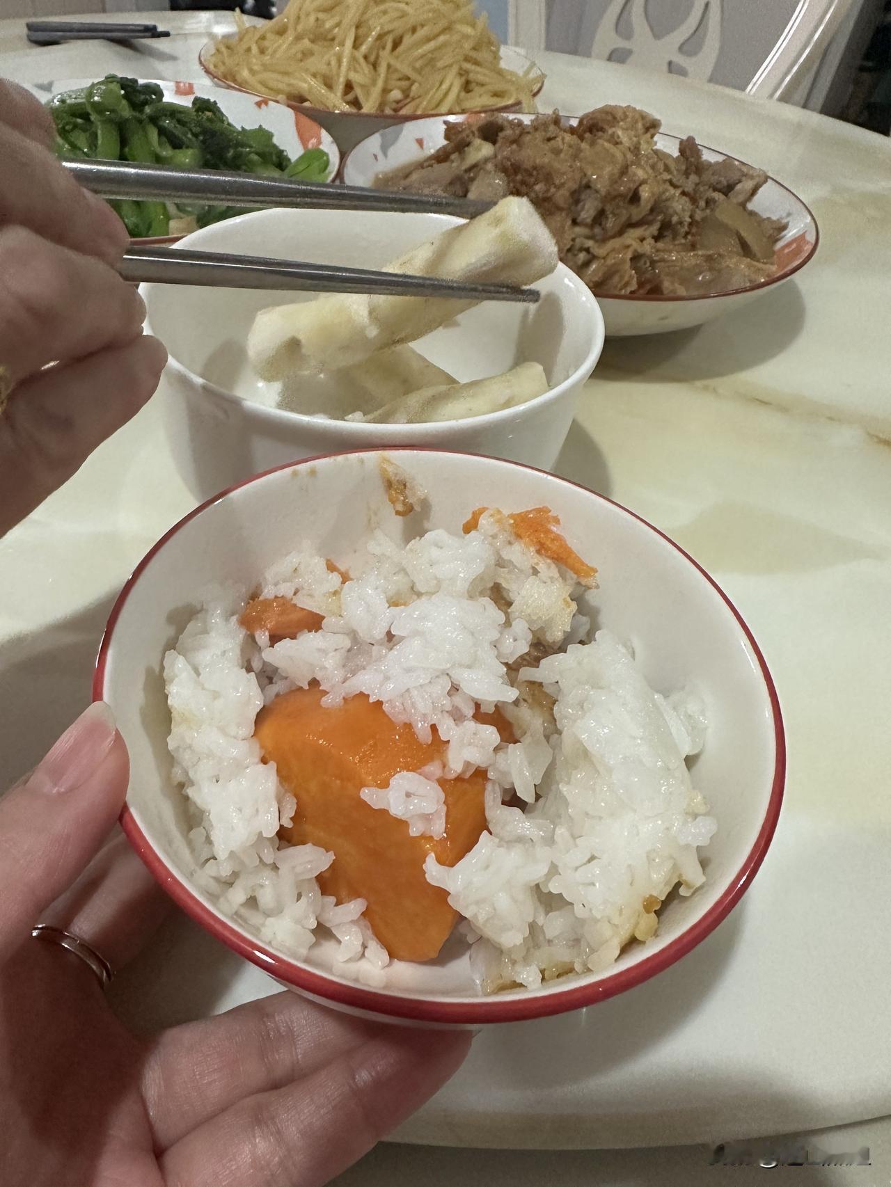 好友们晚上好!周二快乐,晚餐香香!今天的晚餐:辣椒胡萝卜炒肉红烧羊肉松花蛋