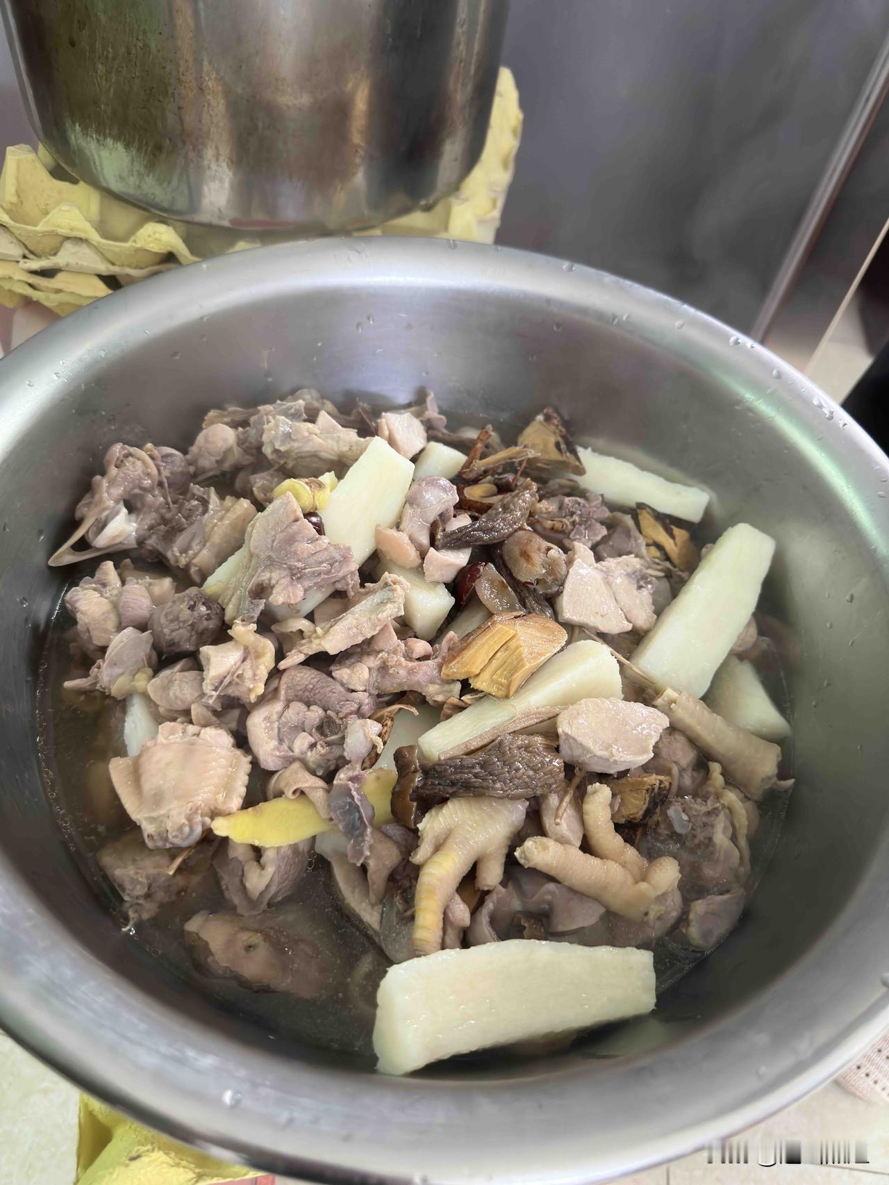 这盘叫无花果浸鸡,英德特色美食,超正,我们项目饭堂厨师的好手艺,有位厨艺好的厨师真的好幸福,不像前面那个项目的做饭阿姨不会做饭菜的,总是吃不下,浪费食材,有点可惜。无花果鲜鸡煲
