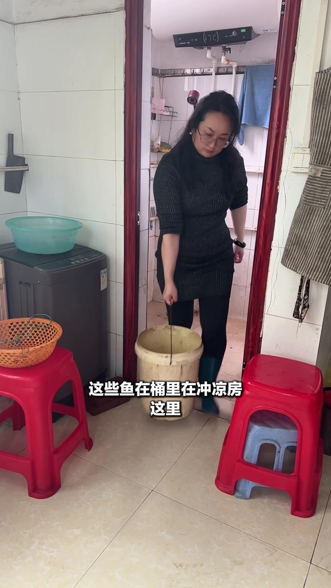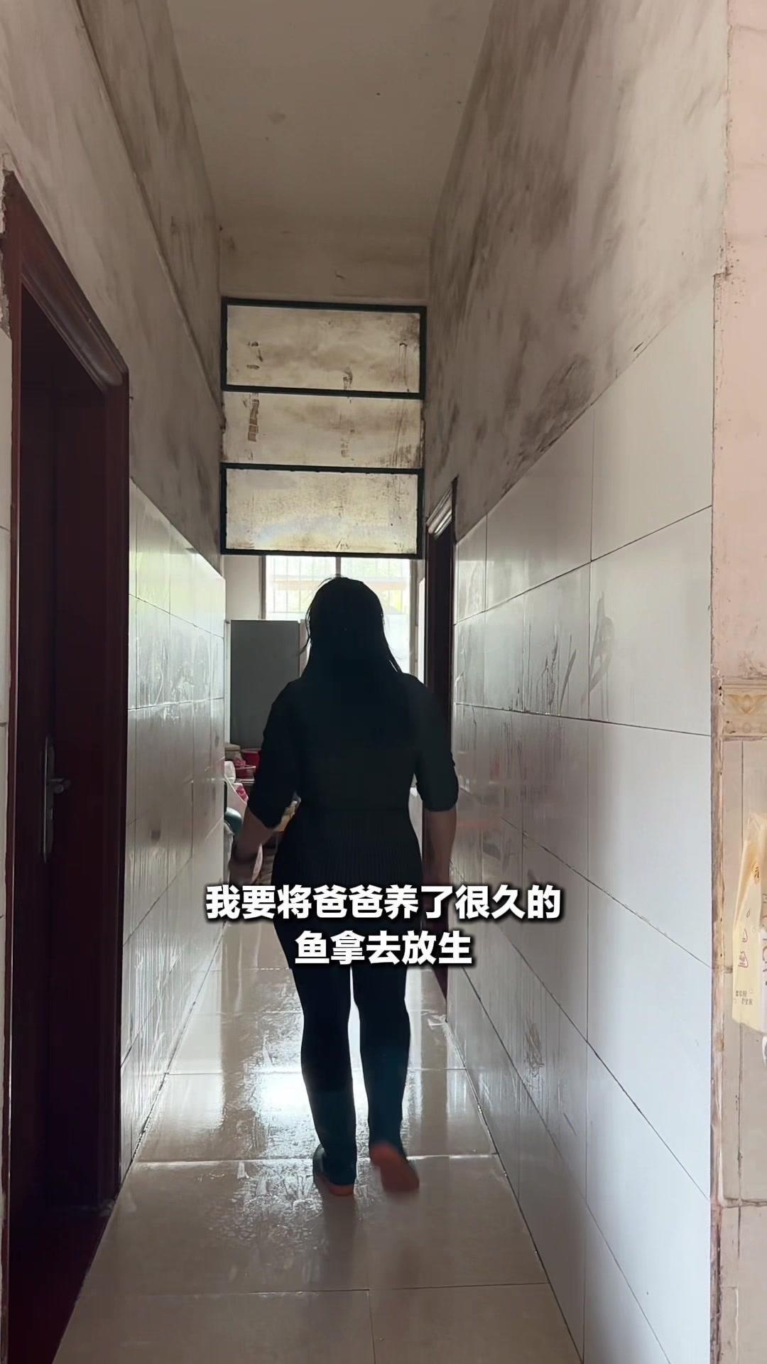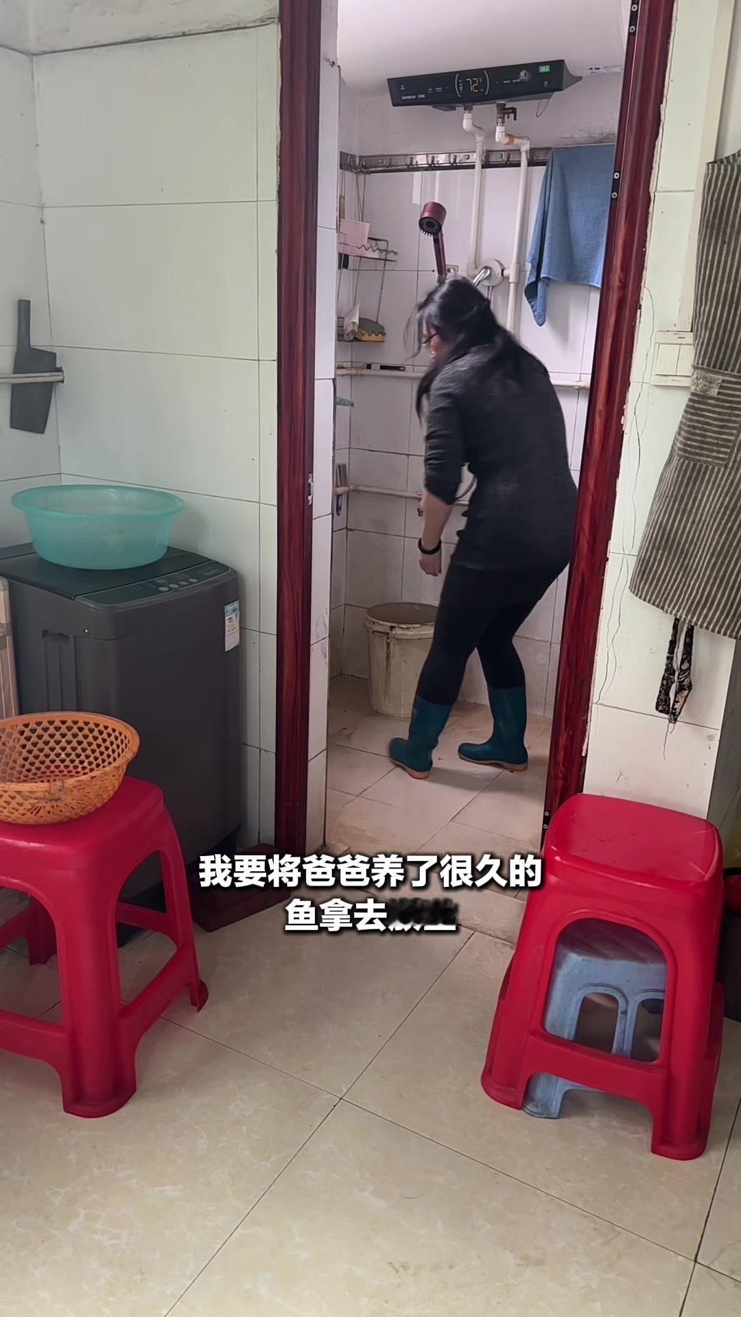 今日要将爸爸养了很久的鱼拿去放生。这些鱼在桶里、冲凉房一直养了好久好久,它们是红