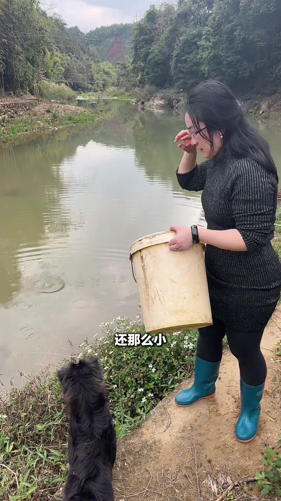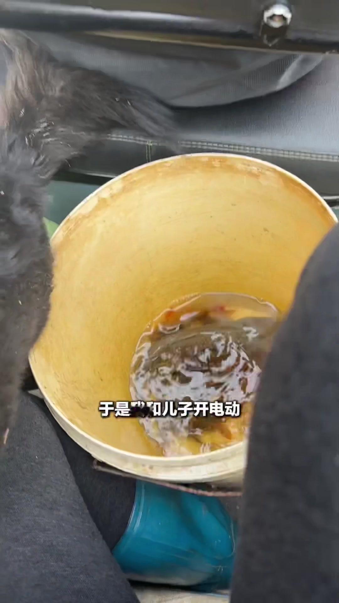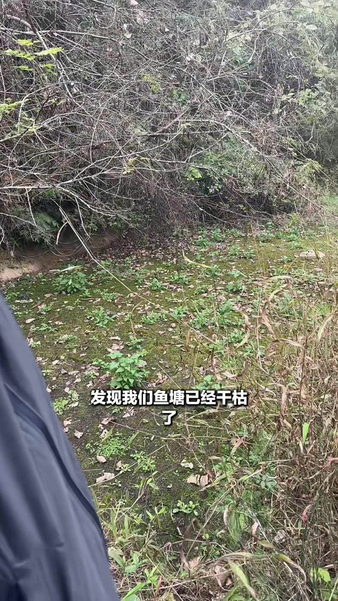 我到鱼塘看看有没有水,发现鱼塘已经干枯了。于是我和儿子开电动去找大点的水域放生它们。