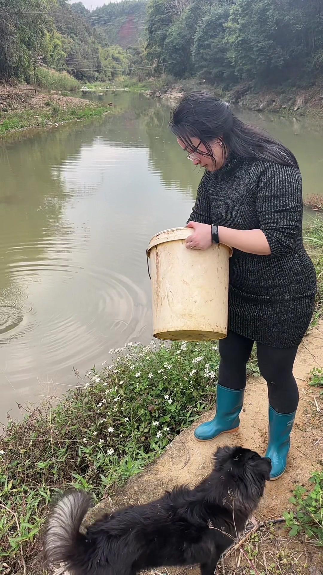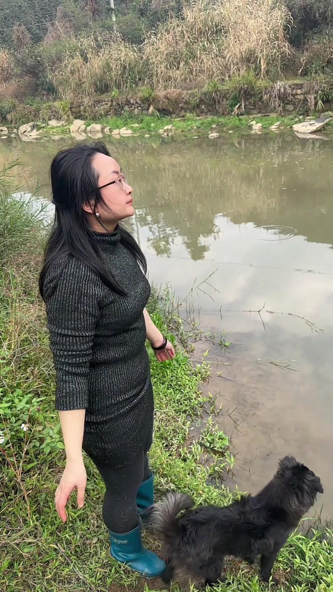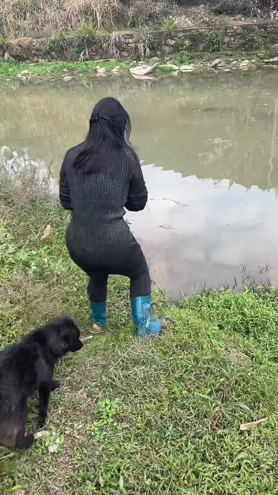 我到鱼塘看看有没有水,发现鱼塘已经干枯了。于是我和儿子开电动去找大点的水域放生它们。