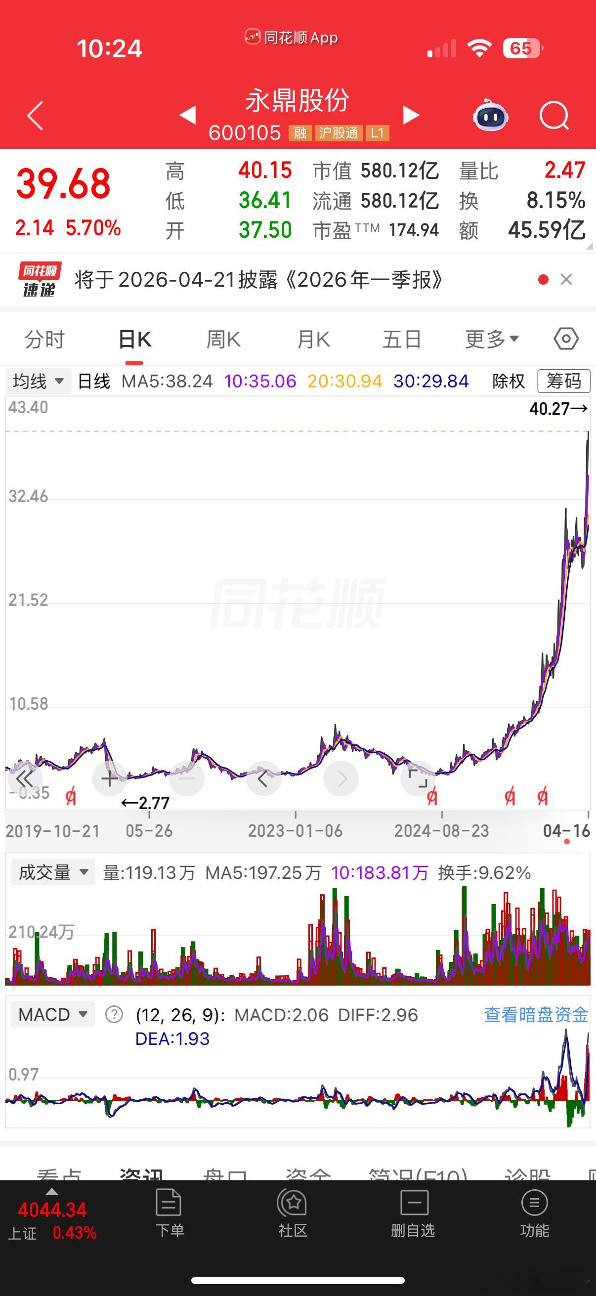 $永鼎股份 sh600105$ 十倍大牛股,除易中天之外,更强的势头,观点不变