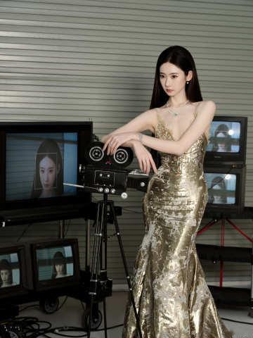 张艺凡鎏金吊带长裙张艺凡金色长裙 张艺凡金色长裙好美啊啊啊张艺凡