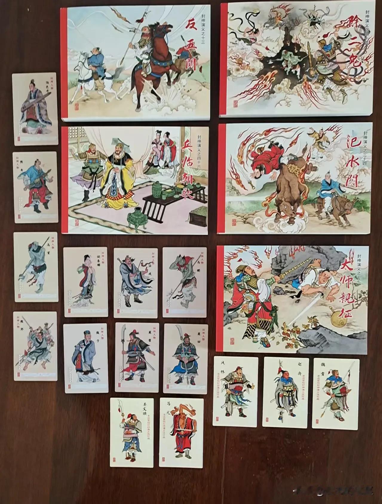 32开的大平装本《太师亲征》、《兵临朝歌》、《汜水关》、《反五关》、《除二鬼》这五册,定价175元,并且同时赠送10张人物收藏卡(精装本和平装本都会赠送相同的人物收藏卡)。后续还有一批5册的,发行完就收官了,这很不容易。连环画