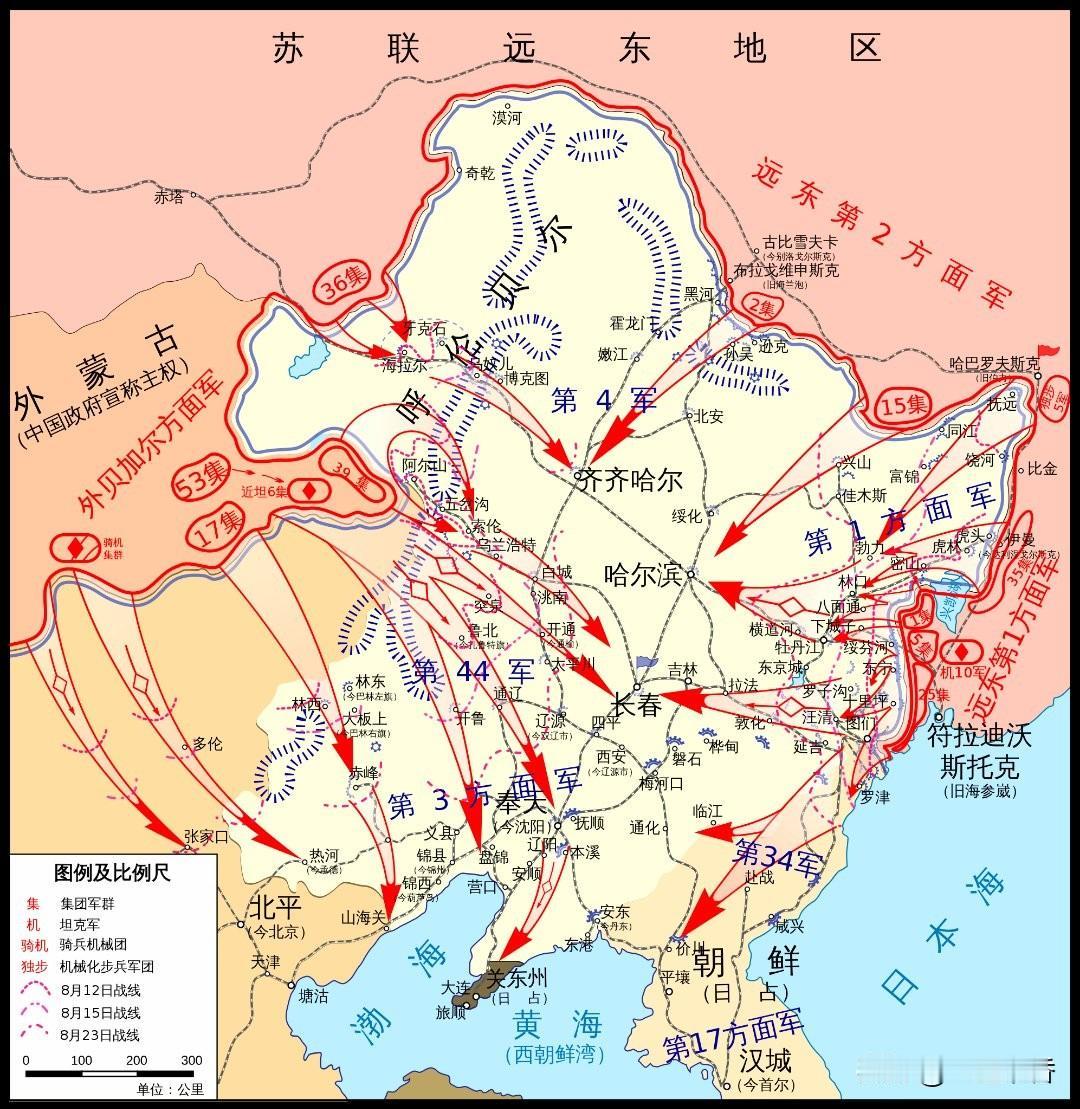 关东军虽号称精锐,但此时主力已被抽调至太平洋战场,兵力、装备与士气均严重不足,加上对苏军进攻方向判断失误,防线迅速崩溃。整个战役是典型的现代化正规会战,从宣战到进攻衔接紧密,符合国际法与战争惯例,不存在不宣而战的偷袭性质。苏军凭借压倒性优势快速取胜,加速了日本投降进程。
