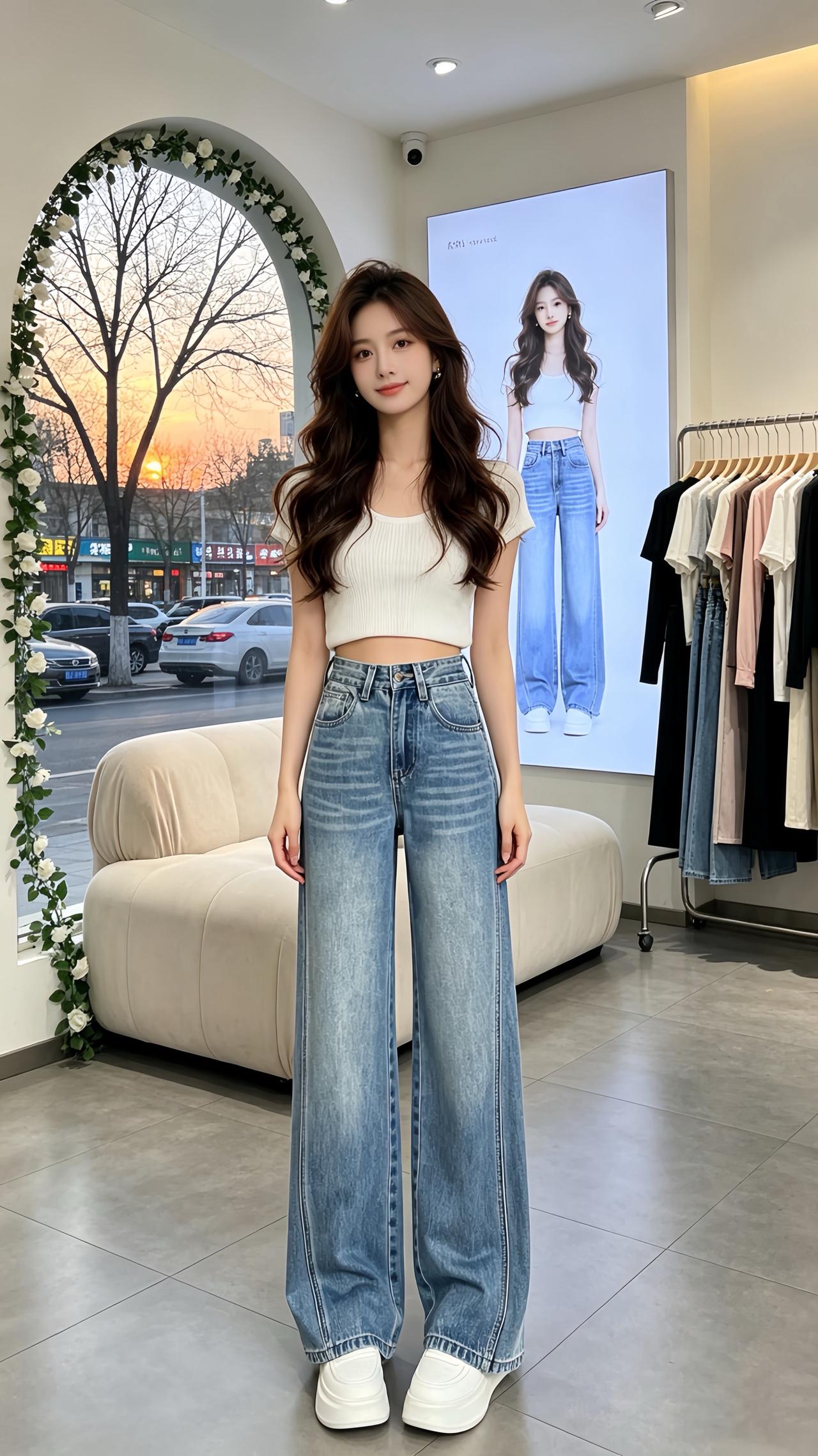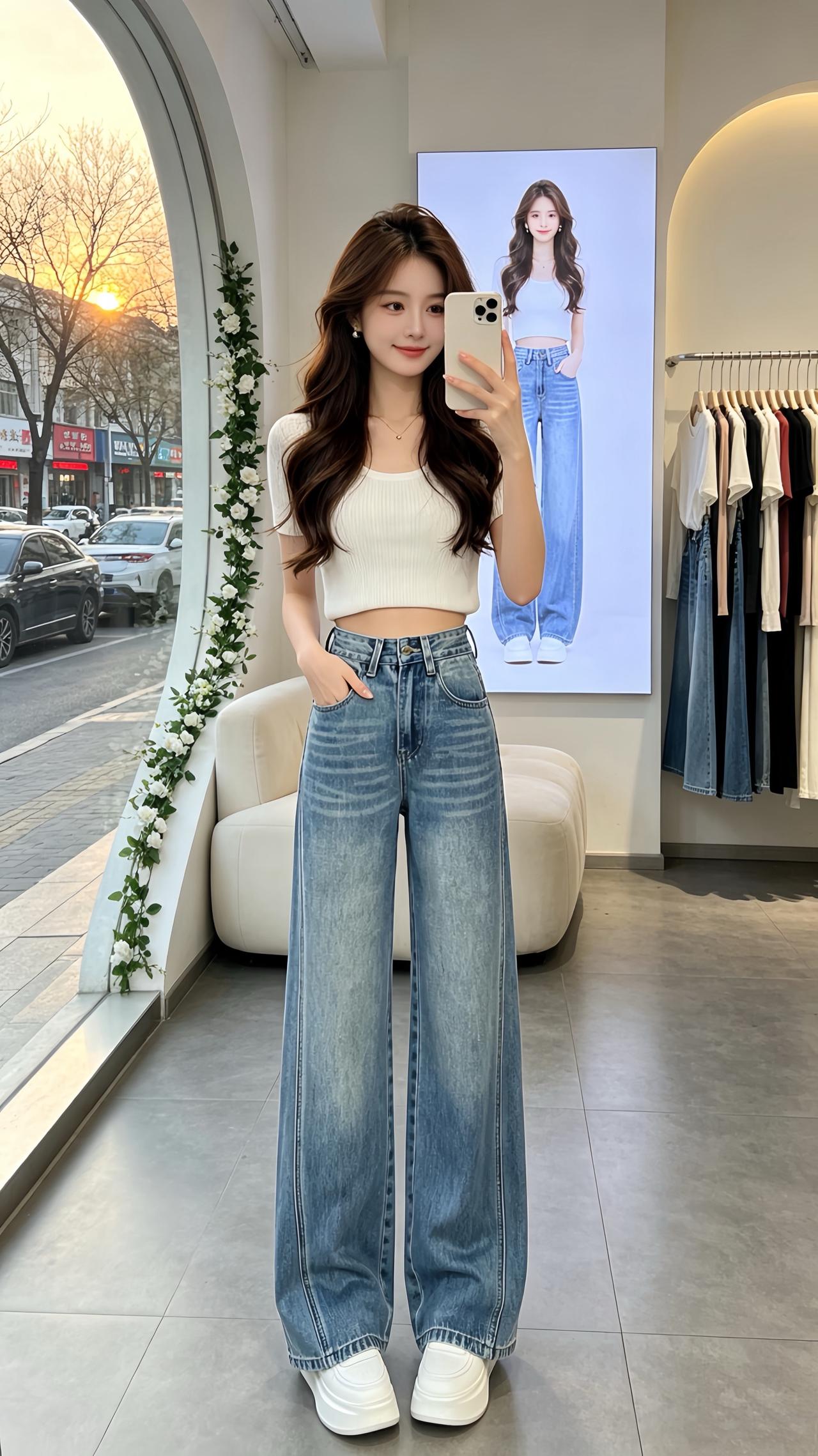 春季高腰牛仔裤 高腰显瘦 显高显瘦显腿长