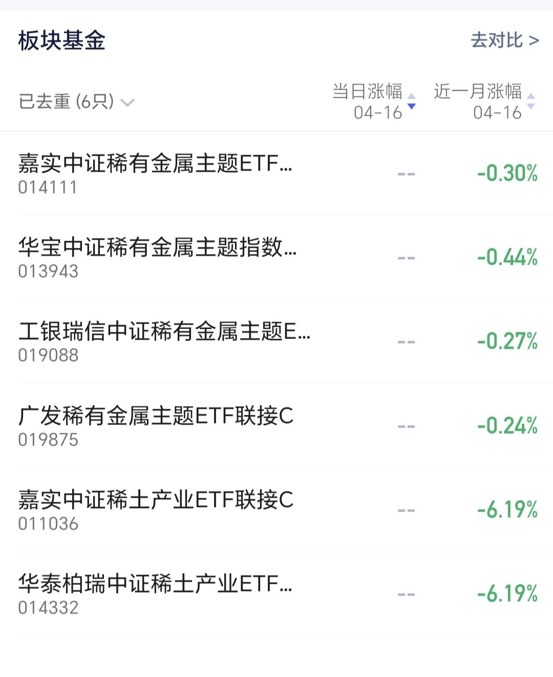 稀土永磁板块有6只基金,各只基金的情况见下面的截图3,近一个月以来,这个板块所有的基金都是下跌的。