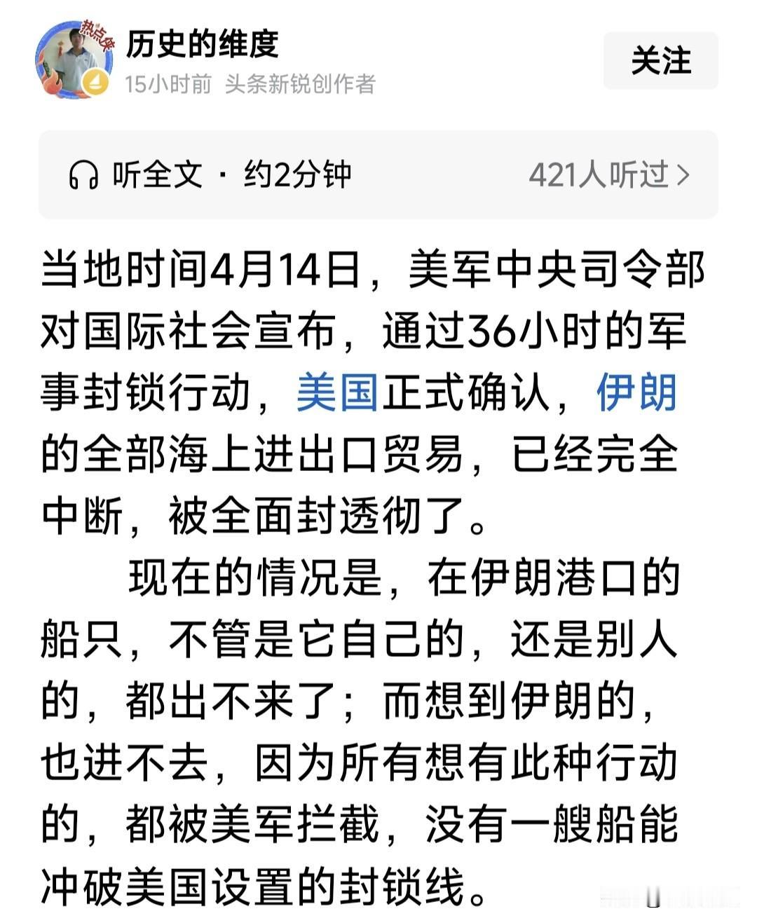 不得不服老美,此招比武力夺岛或者强行打通霍兹海峡都好!不用付出伤亡代价弹药消耗,就把问题解决了?