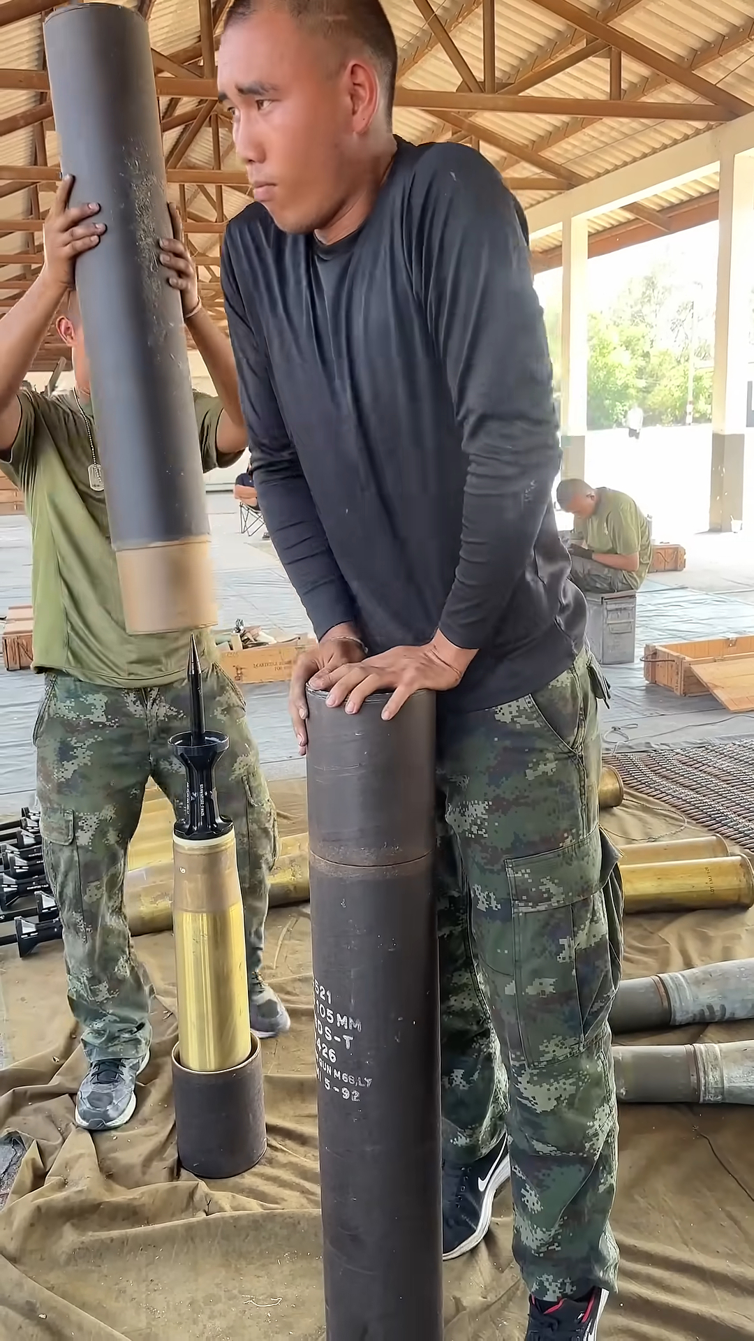泰国陆军装甲兵配发的105毫米穿甲弹,图中可见这是以色列IMI公司制造的第三代105毫米M426尾翼稳定脱壳穿甲弹(APFSDS),该弹在德国Diehl许可生产的型号为DM63,在泰国陆军中该弹可用于M60A3 TIFCS、“魟”式突击队轻坦、M48A5 FCS-10型等坦克。