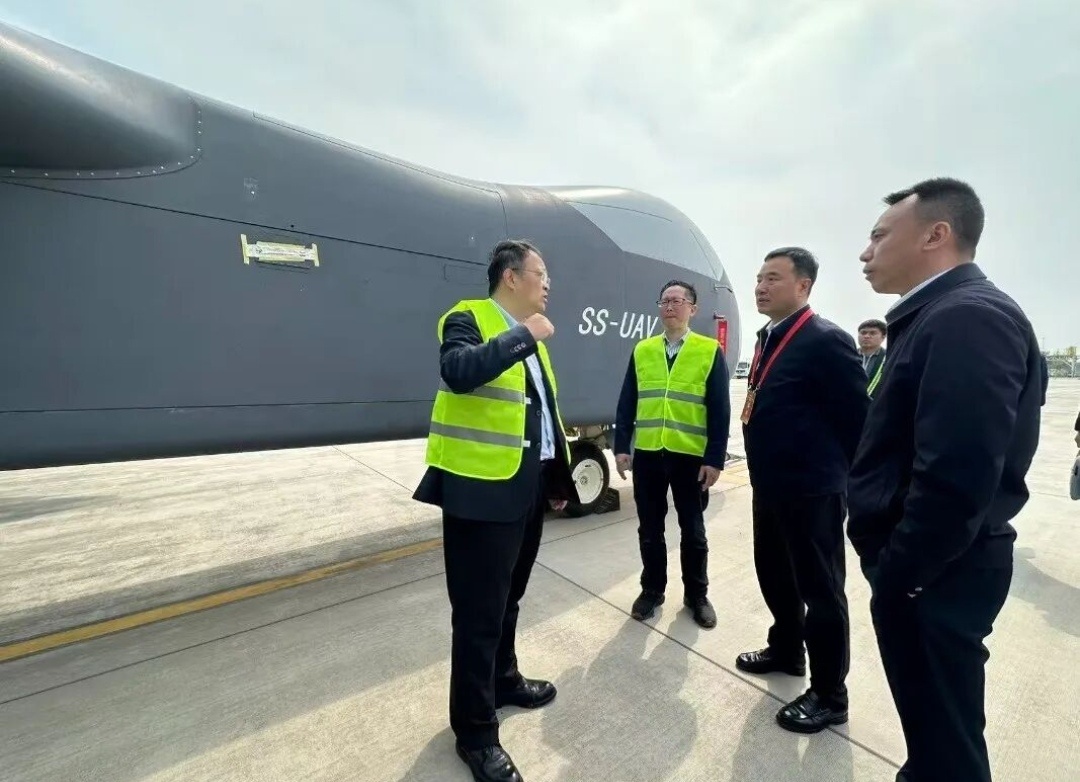 4月15日上午,中国民用航空西北地区管理局局长孙剑岷、副局长李勇一行赴渭南机场民机试飞中心开展现场调研,实地考察陕西无人装备“九天苍穹”无人航空通用平台项目,深入了解型号研制进展及适航取证工作情况。