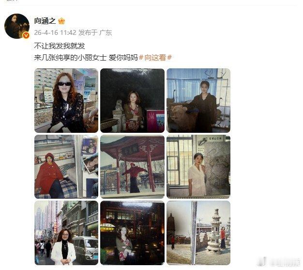 向涵之发了九张妈妈照片别人是乖乖女,向涵之偏要当“魔丸”。妈妈越不让发,她越要晒