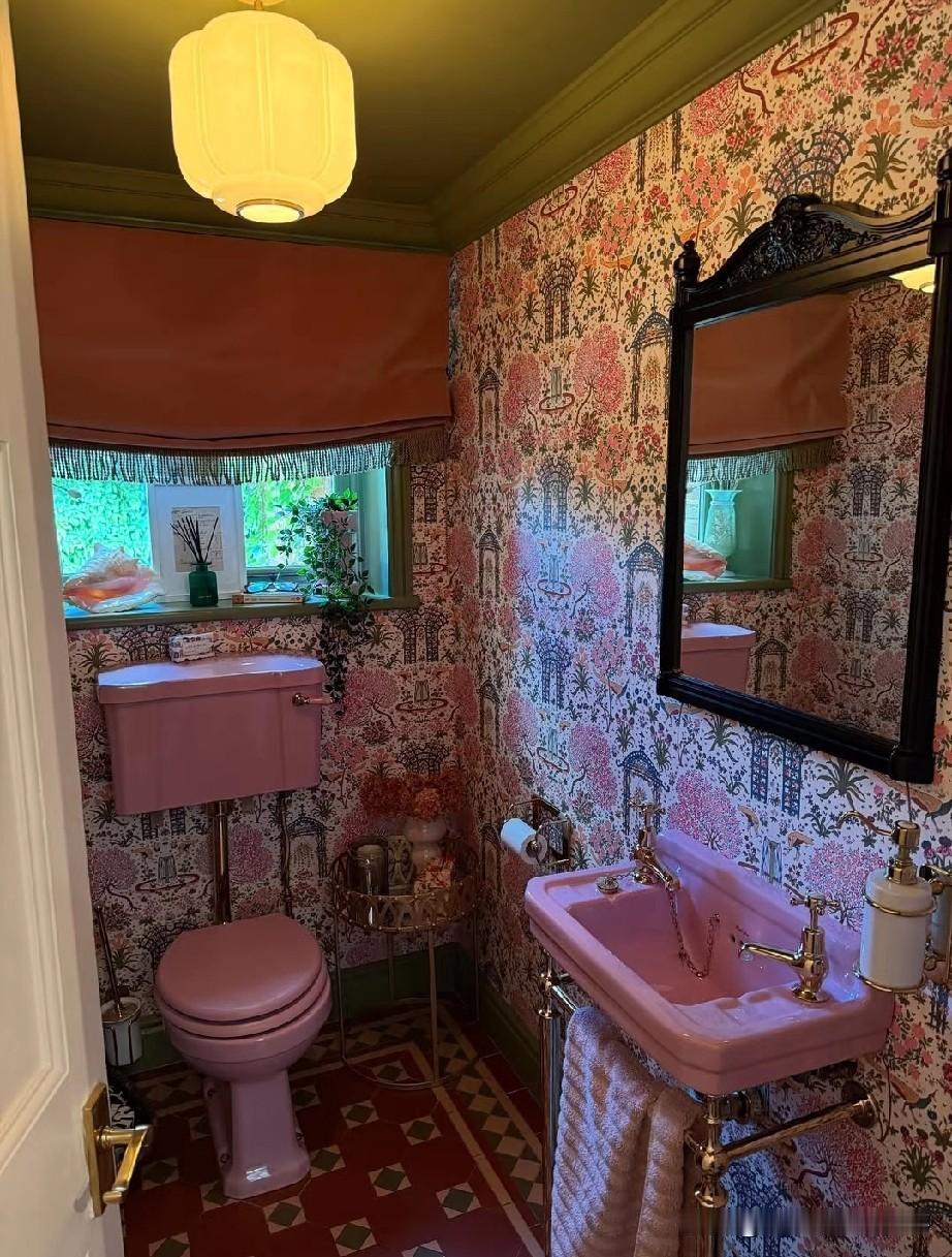 就连卫生间都做了粉色复古款,粉粉嫩嫩的太戳女生了!碎花壁纸和黄铜五金,每一处都赏心悦目。