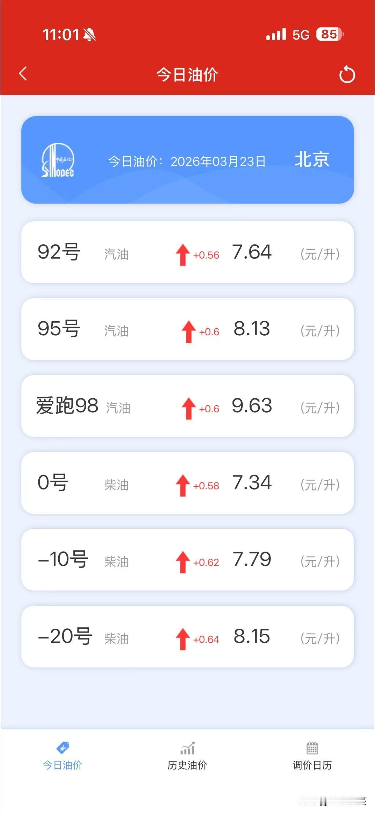 今天去加油,服务员问我加几号油?我说,95加满,她说95要等一会儿,这会儿正在卸油。 听说明天汽油价要涨价了,开油车的人都去加油了,这一会儿加油的功夫,我这车都快被围得水泄不通了。 今天加油价95号,8.09元,比以前涨了没多少。