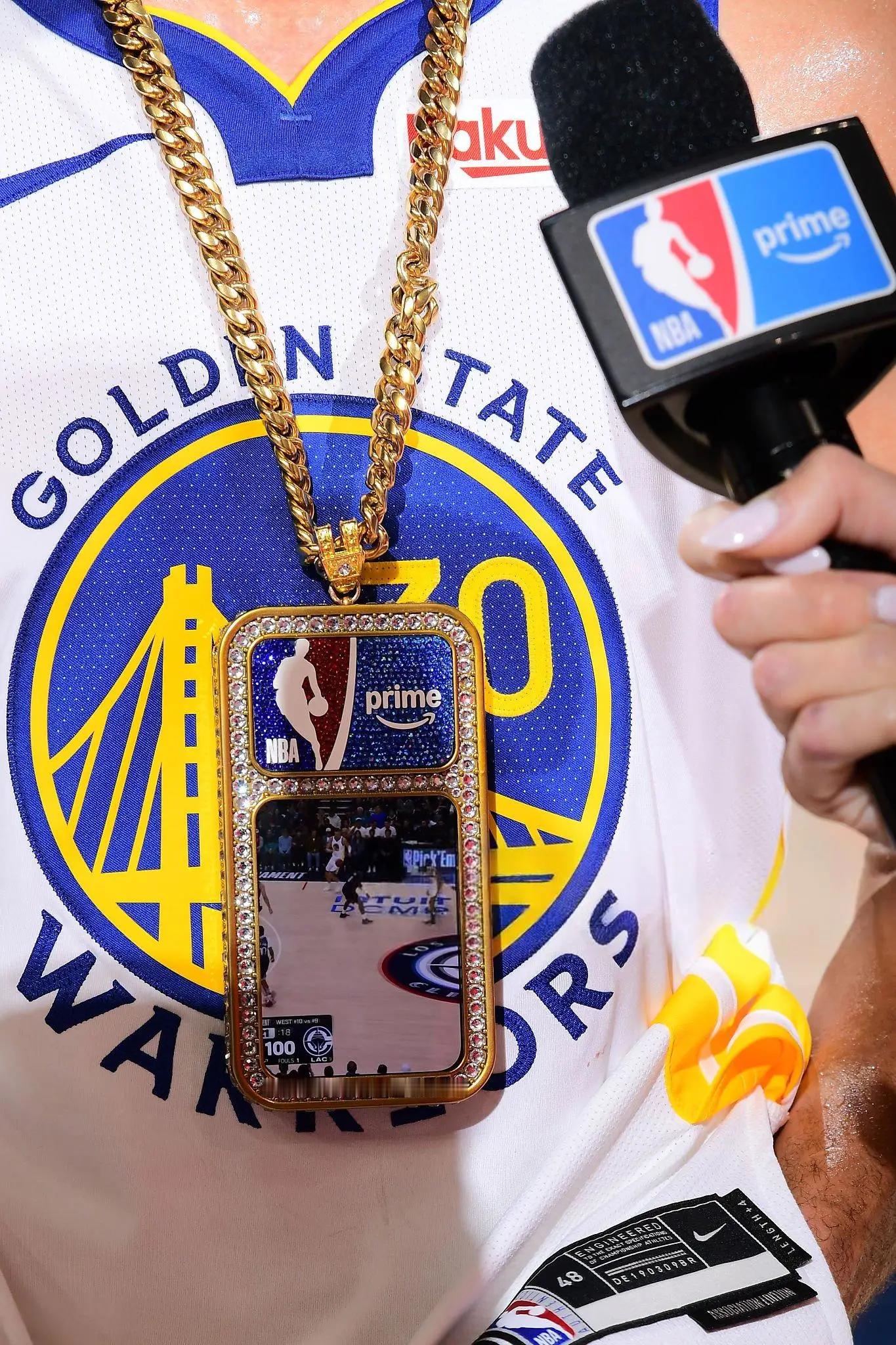 库里佩戴“关键球员”纪念项链接受赛后采访