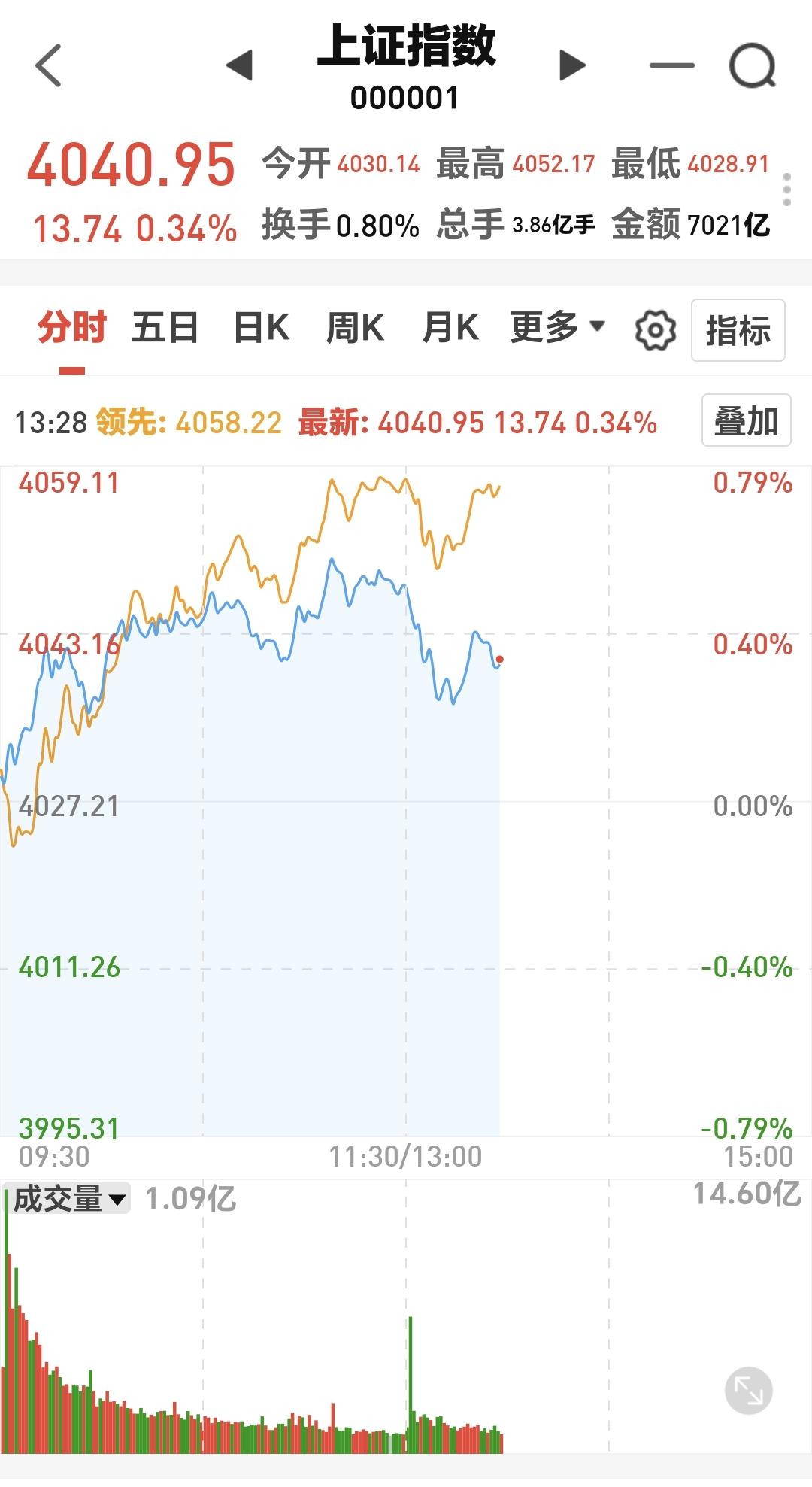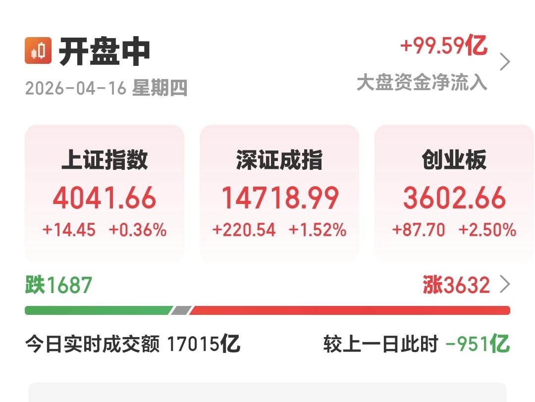 下午开盘以后小幅度震荡,震荡的幅度很小,创业板指上涨了2.43%,盘中点位3600点,上证指数上涨了0.35%,盘中点位4041点。