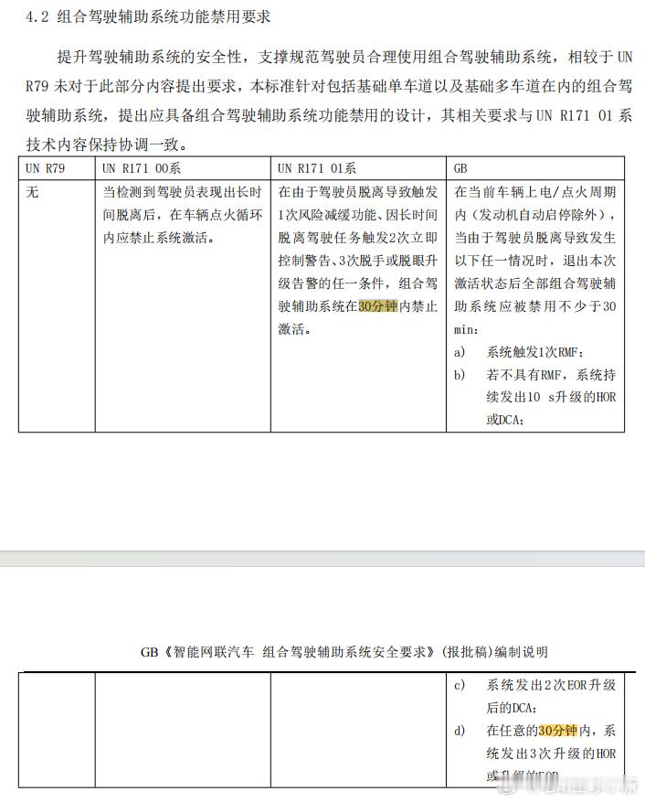 其中有提到,辅助驾驶开启后会检测驾驶员手部 / 视线是否脱离,设分级提示,若驾驶员脱离导致风险减缓,或脱离达一定次数,限时禁用组合驾驶辅助。