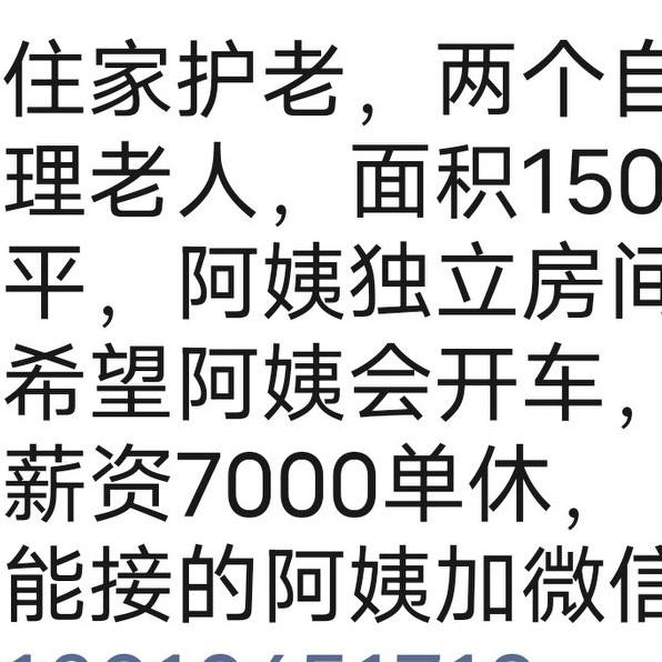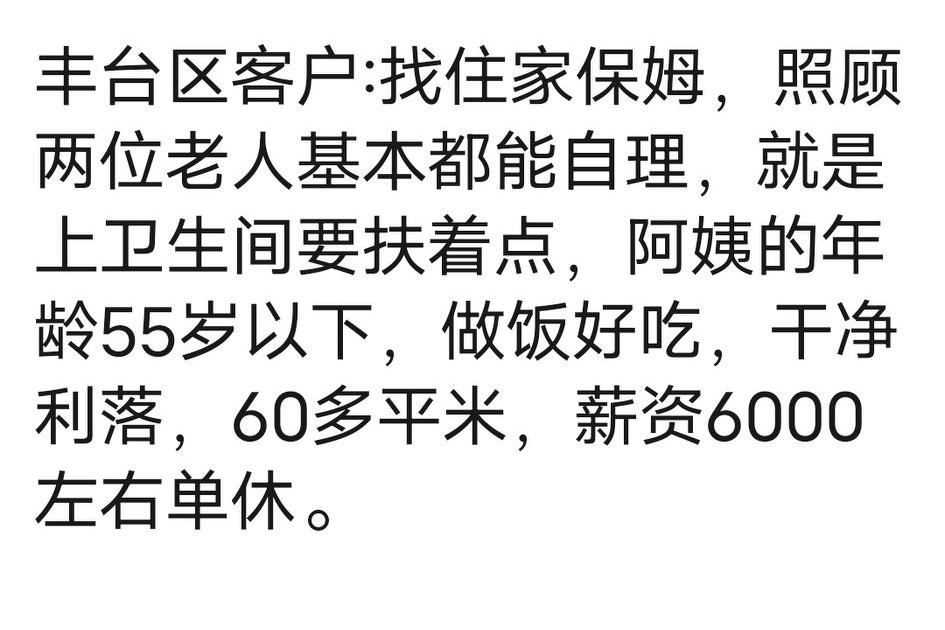 今天晚上,老家的一个同学给我打电话,说想到北京做家政。问我能不能给她介绍一个私单活。