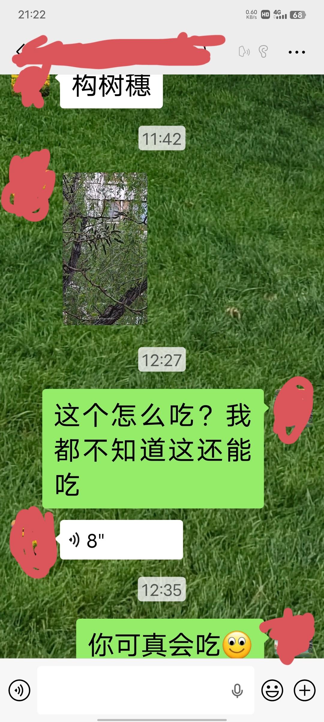 今天上午,我一个做家政的好朋友给我发过来一个图片,让我猜盘子里的绿菜是什么东西,我看着像核桃花,又像是桑葚。