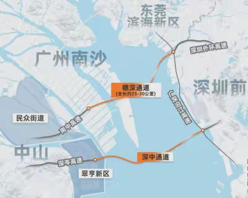 中山只是过路的,广州南沙才是深中通道的落脚点,因为这里离深圳更近又是国家级自贸区