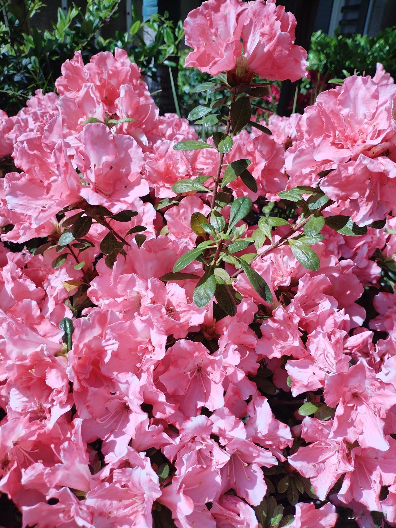 也许是气候的原因,上海的映山红开得比我们那里娇艳。