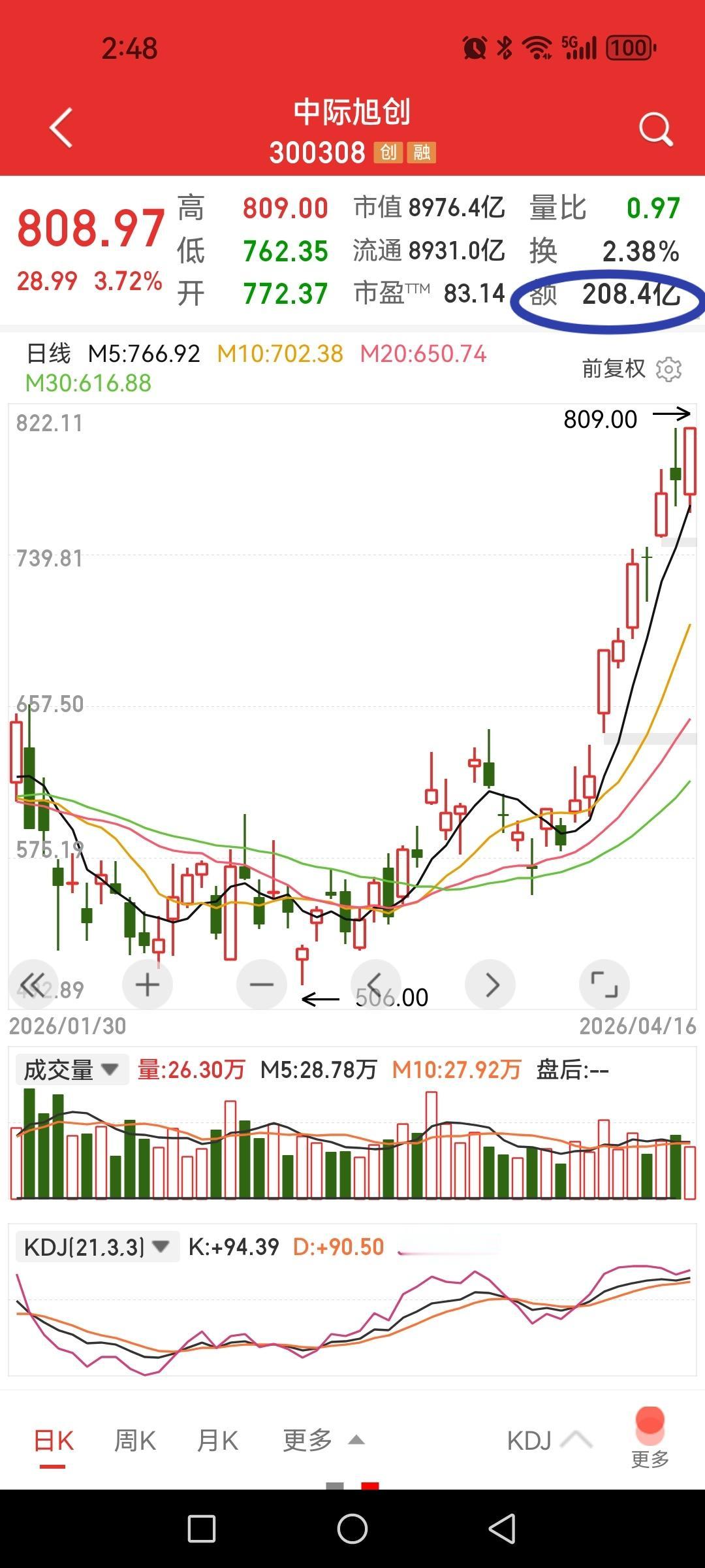 还有像中际旭创、新易盛,成交额均而超200亿,天孚通信成交超160亿。中际旭创站上800元大关继续创出新高,新易盛同样如此。