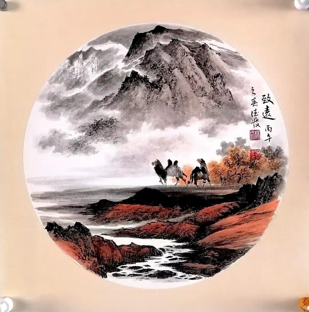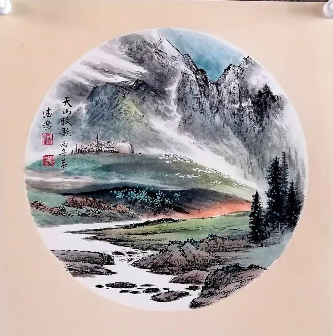 卡纸山水。卡纸斗方晒出我的绘画作品国画山水 书画人生