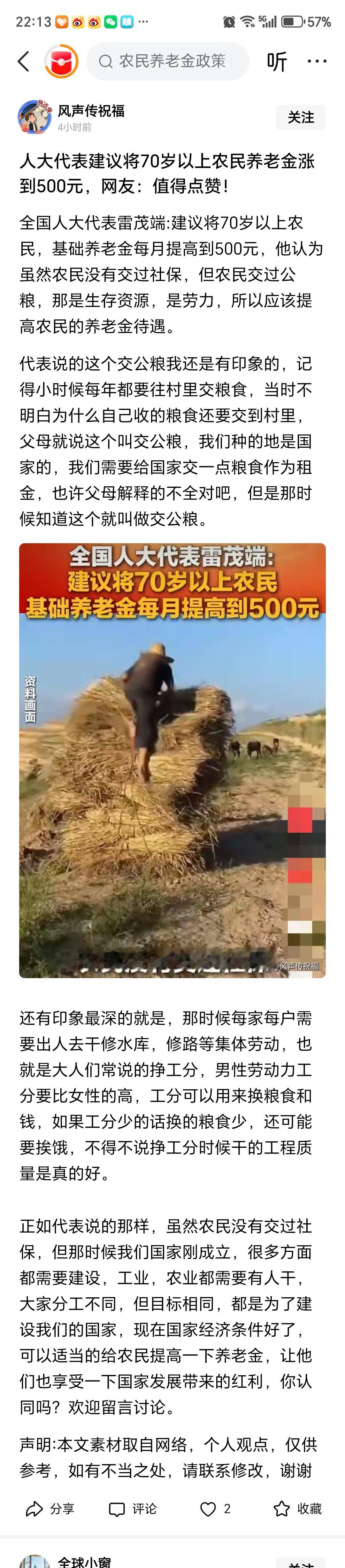 2026年3月,全国人大代表、晨光生物董事长卢庆国提出重要建议:我国农村老年人口已突破1.3亿,但当前每月200-300元的养老金标准与城镇居民存在显著差距。为此建议:短期目标(2026年底前)将全国农村基础养老金最低标准提升至300元/月,缓解老年群体基本生活压力;中期目标(2030年前)提高到500元/月,确保覆盖食品、医疗等刚性支出;长期目标(2035年前)达到800元/月,切实缩小城乡养老待遇差距。这一递进式改革方案将系统性地改善农村老年生活质量,让1.3亿农村老人共享改革发展成果。