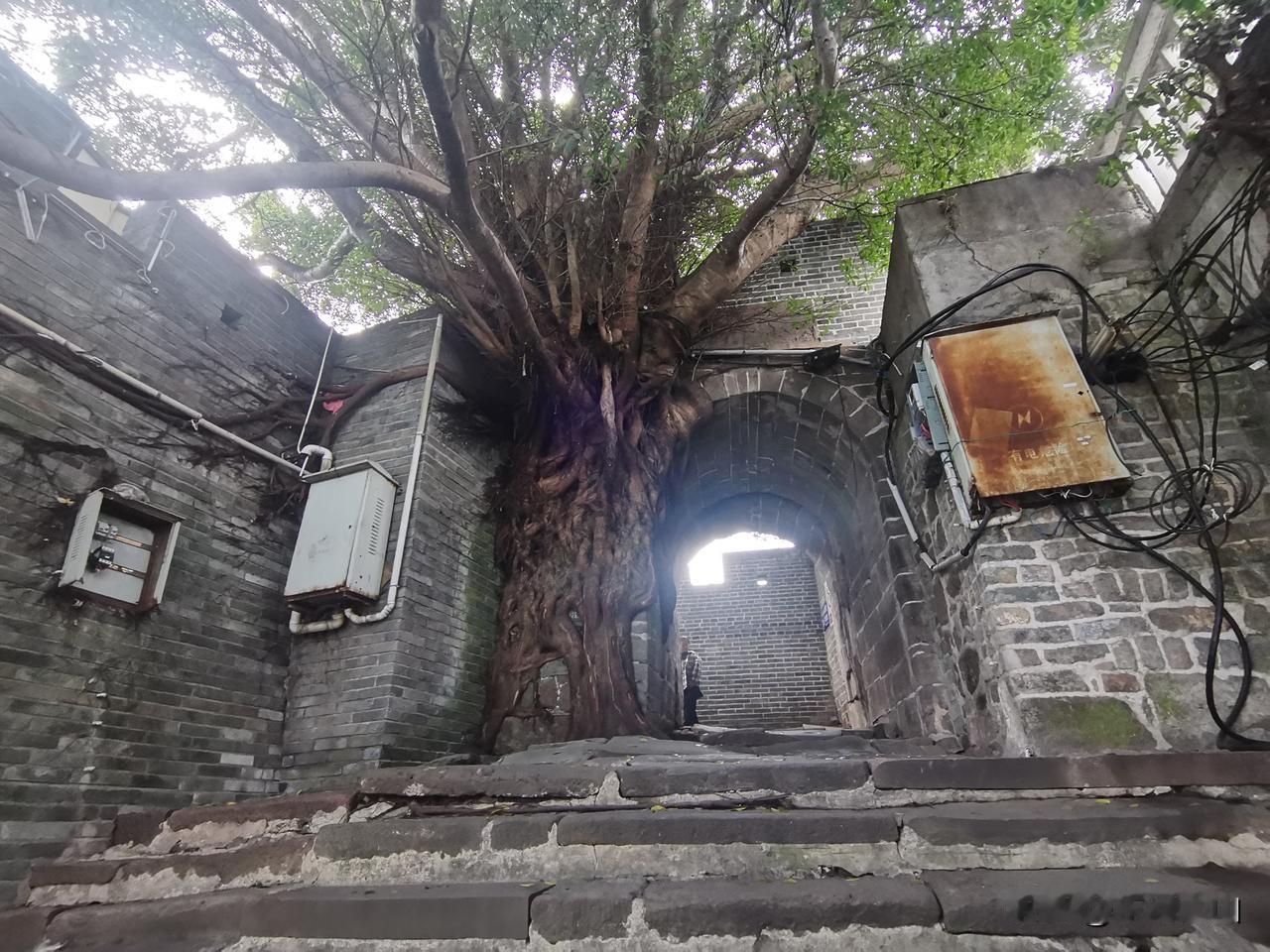 会昌城墙和步云桥紧密相连,城墙门洞边古榕树顽强的生长。