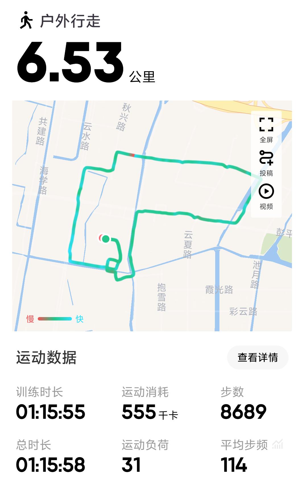 坚持快走21天,时长26.5小时,132公里。继续加油吧!清晨六公里慢跑 每日运