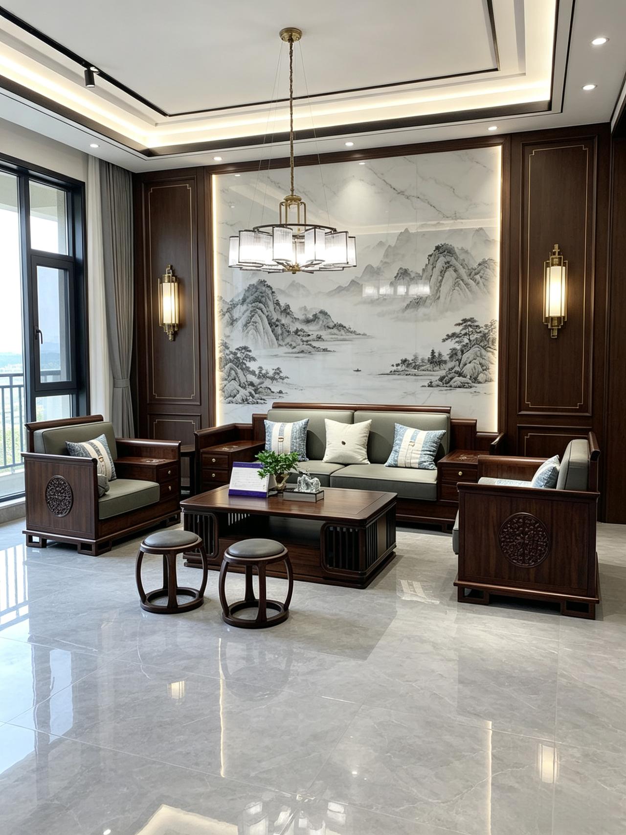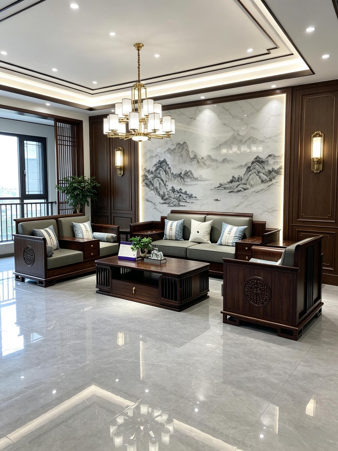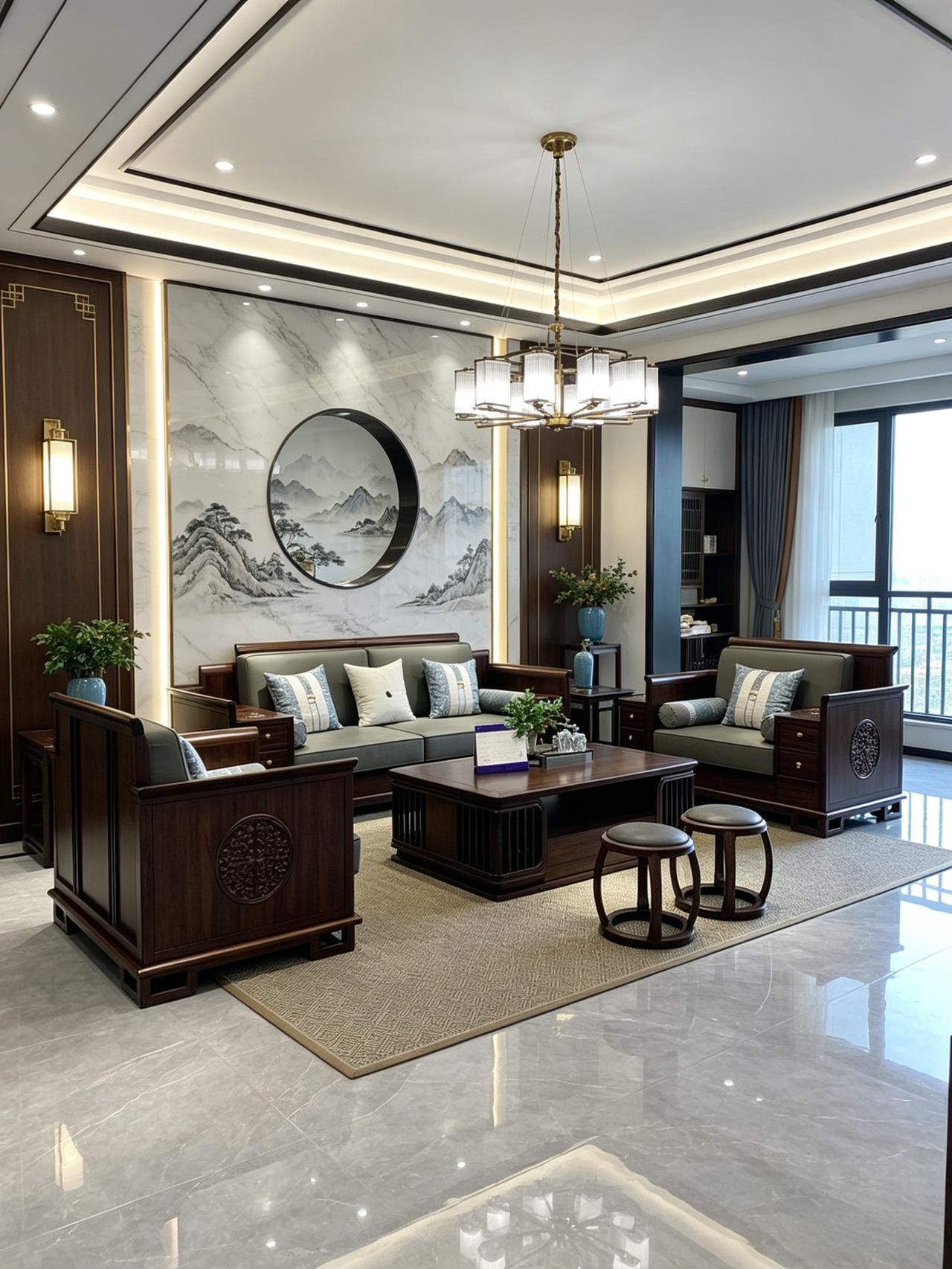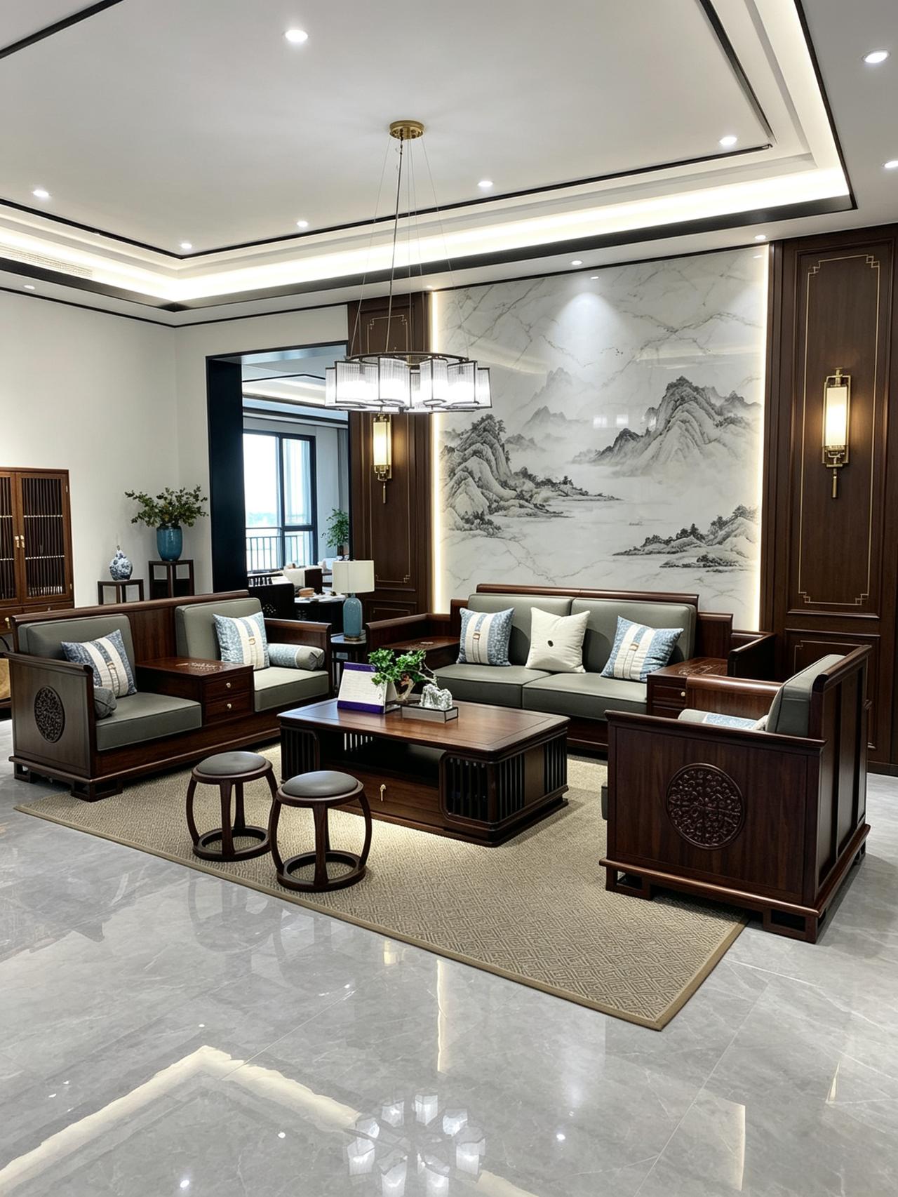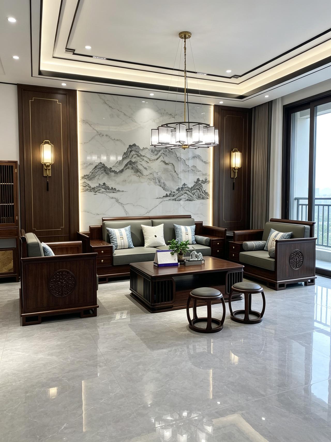 新中式客厅风格装修 新中式沙发 新中式家具 农村自建房 新中式自建房